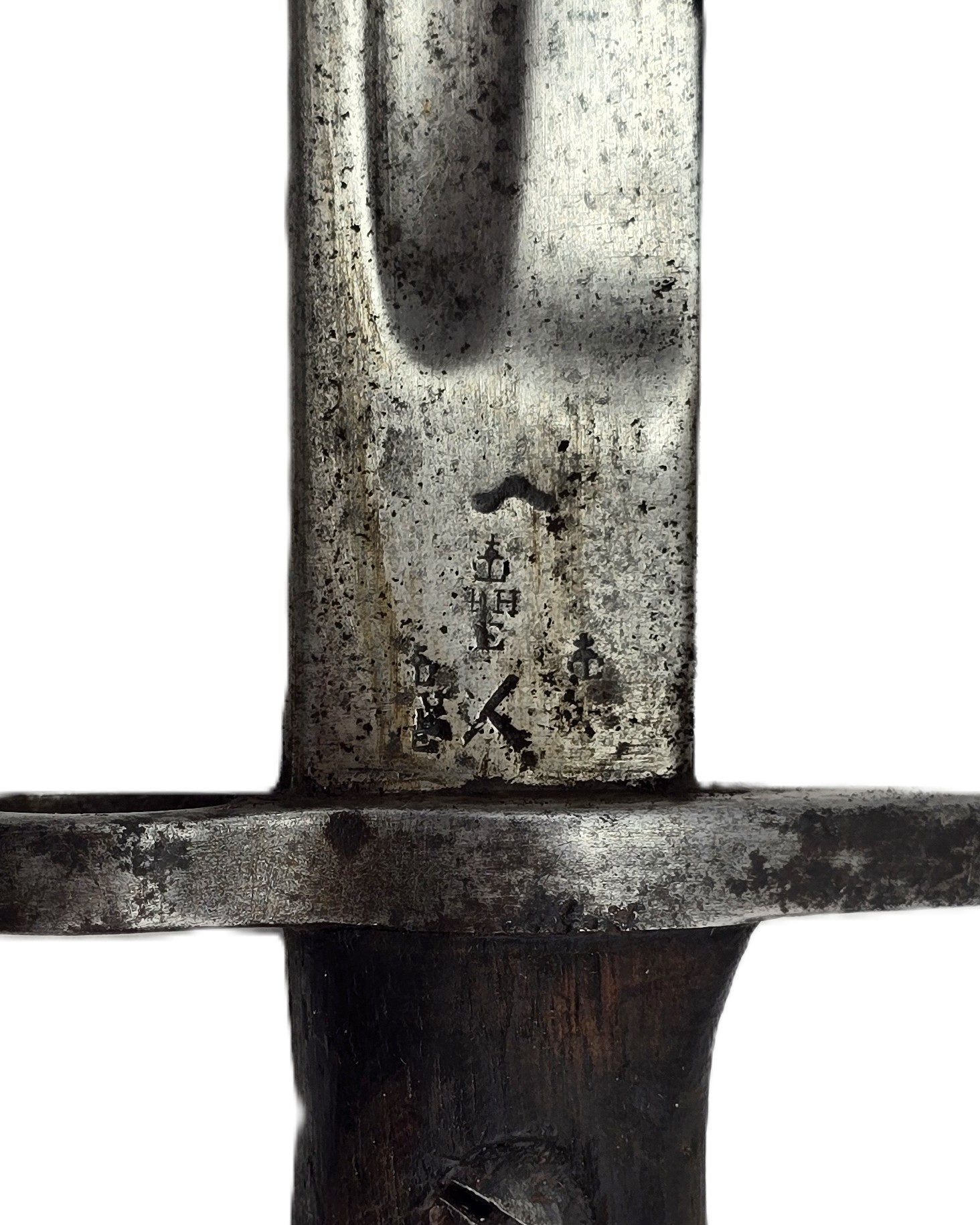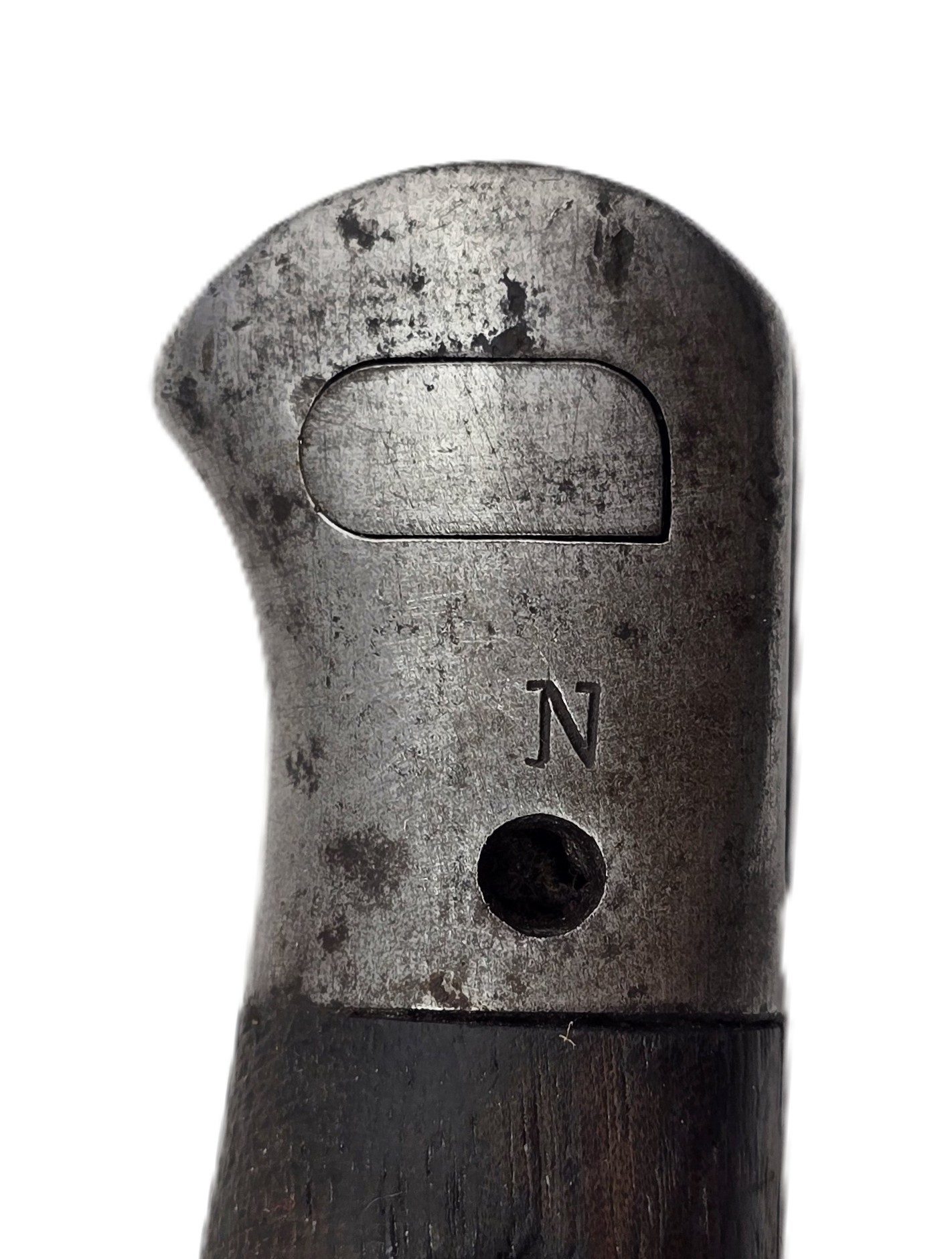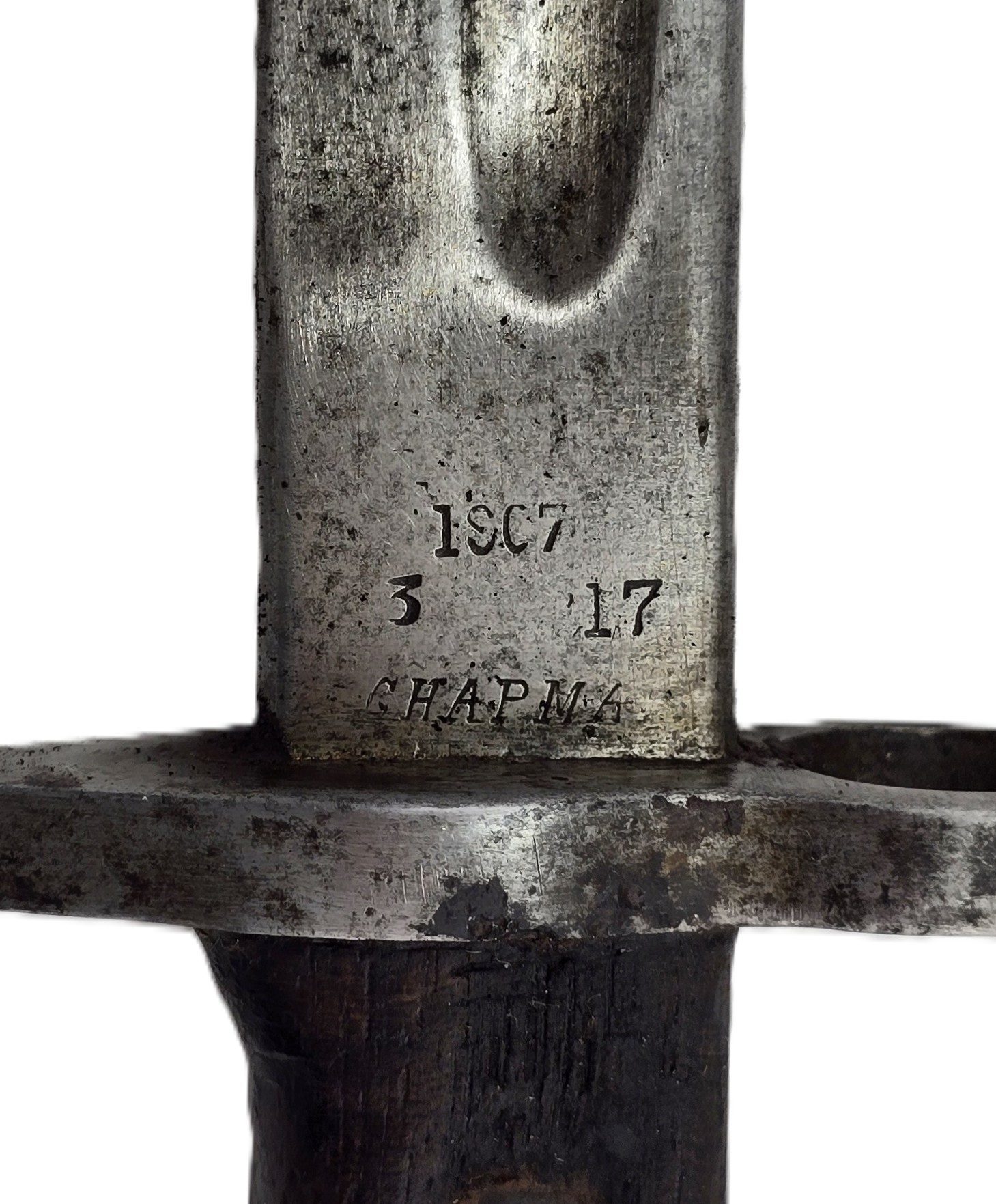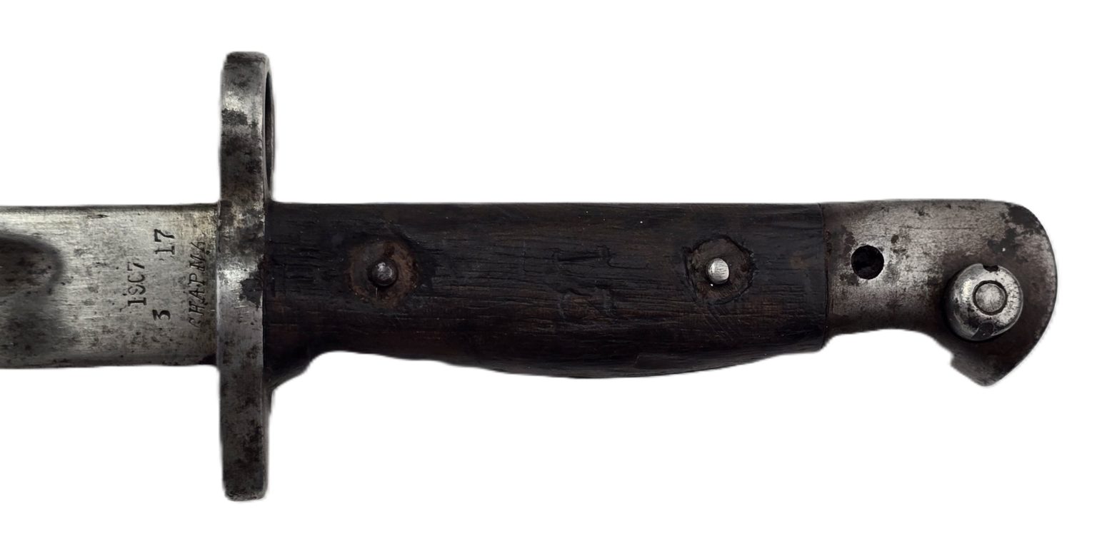 Bayonet with makers CHAPMAN and armour marks to blade, stamped N to hilt,complete with scabbard in all round used condition.