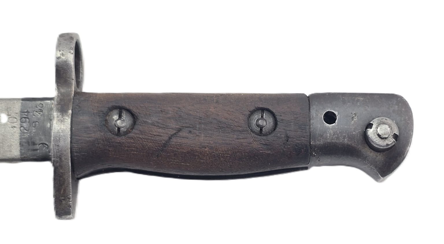Bayonet complete with scabbard, in all round good used condition.Please note you must be over 18 Years old to purchase any Bladed item. ID is needed on the first purchase. Sorry we can no longer send any bladed items over sea.