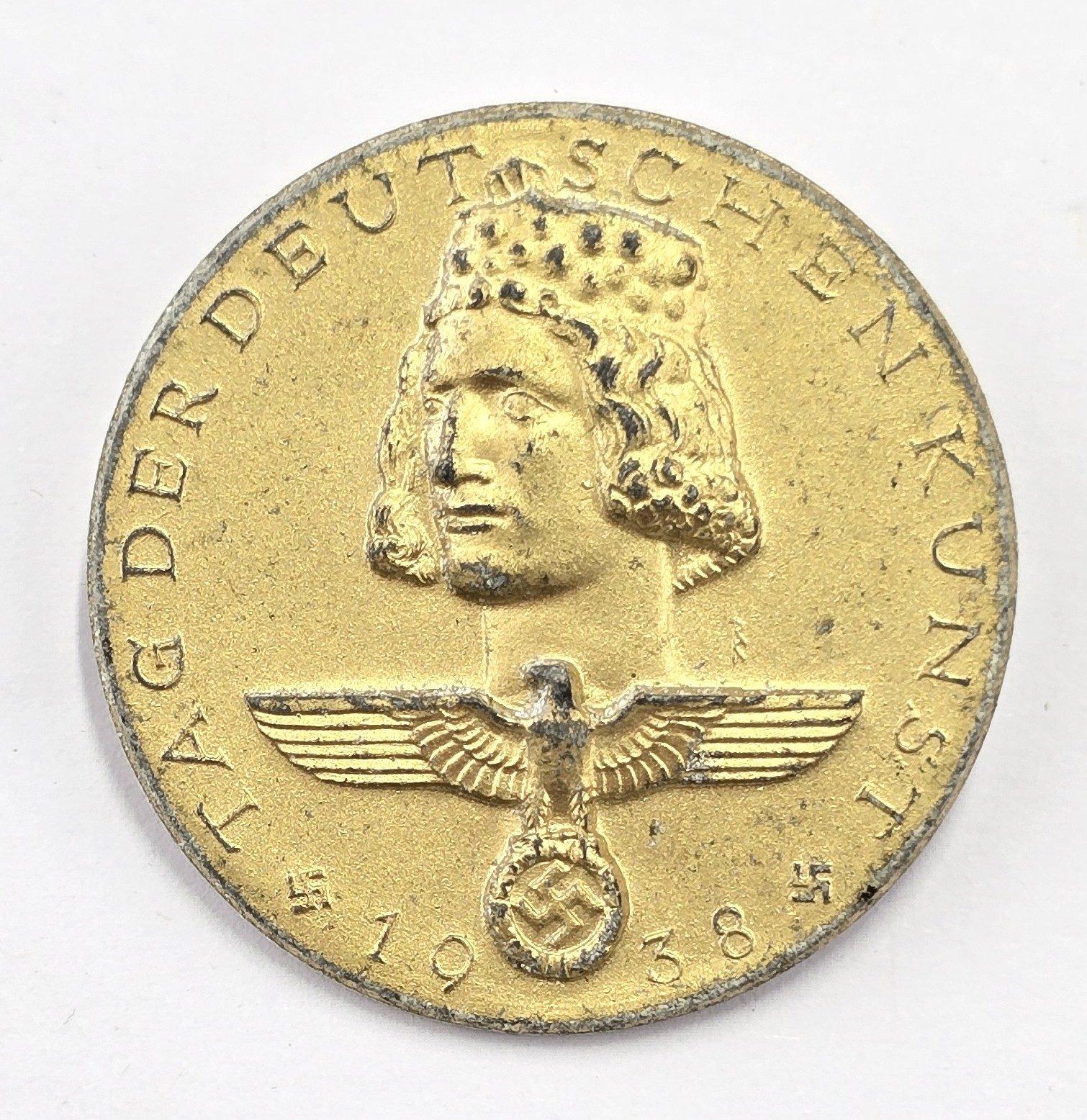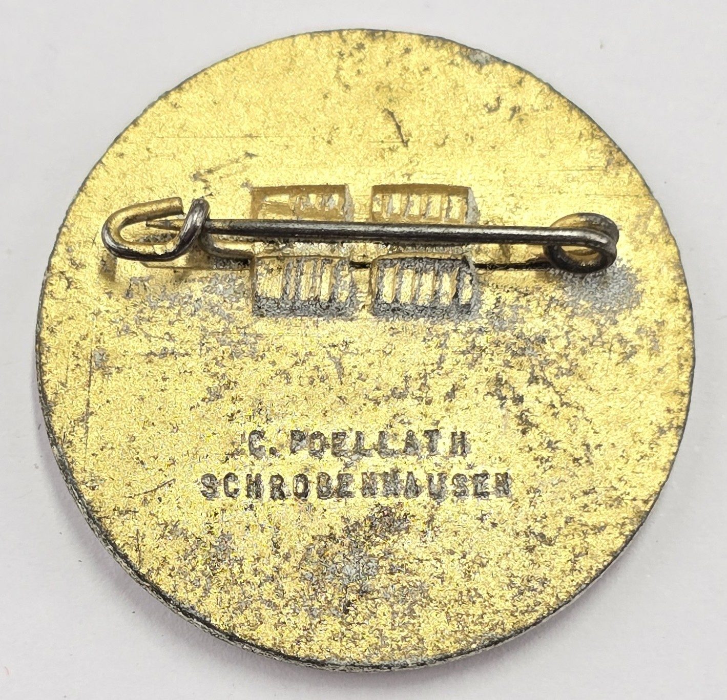 Gilt finish alloy badge, with pin and maker to back, in used condition.