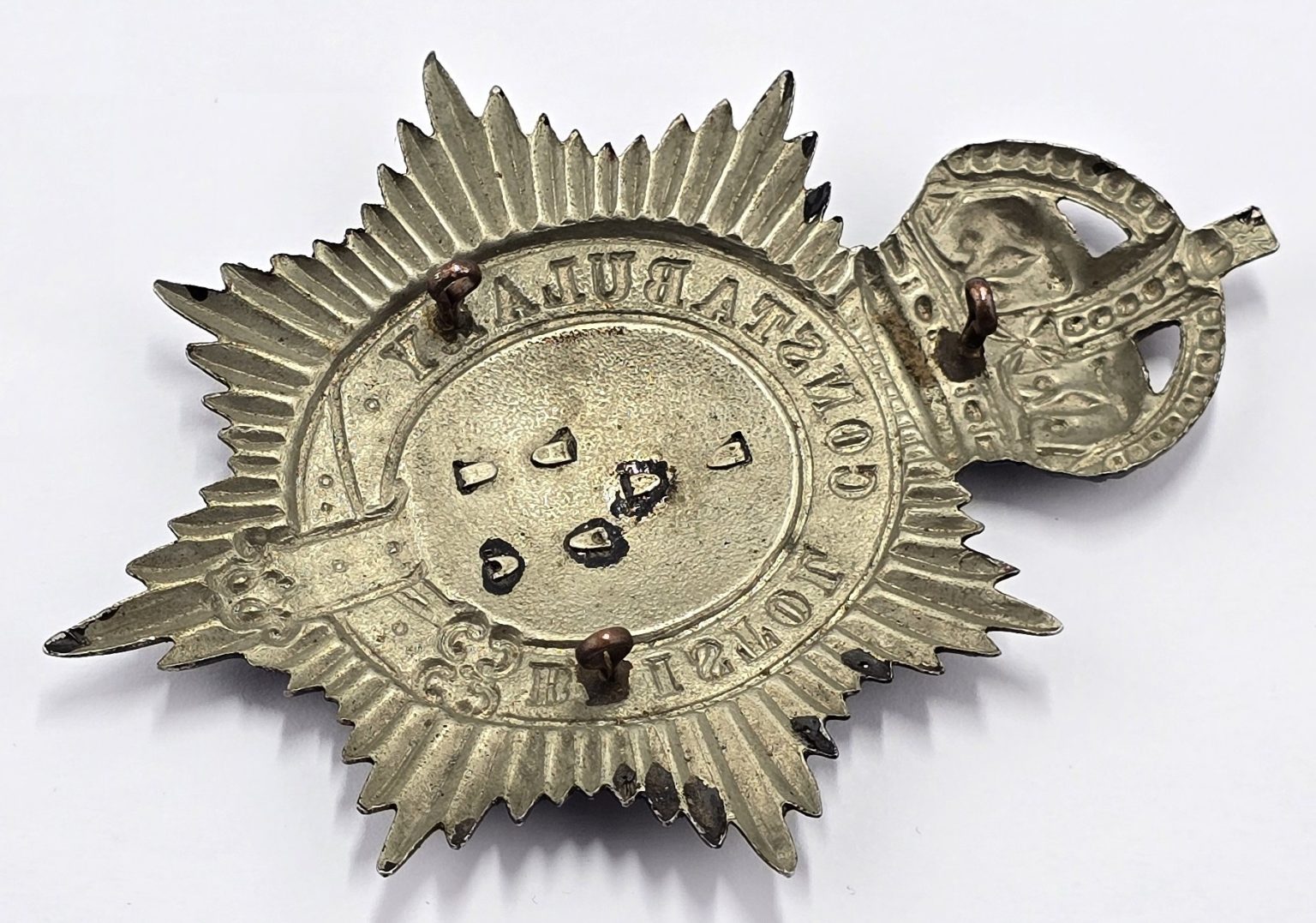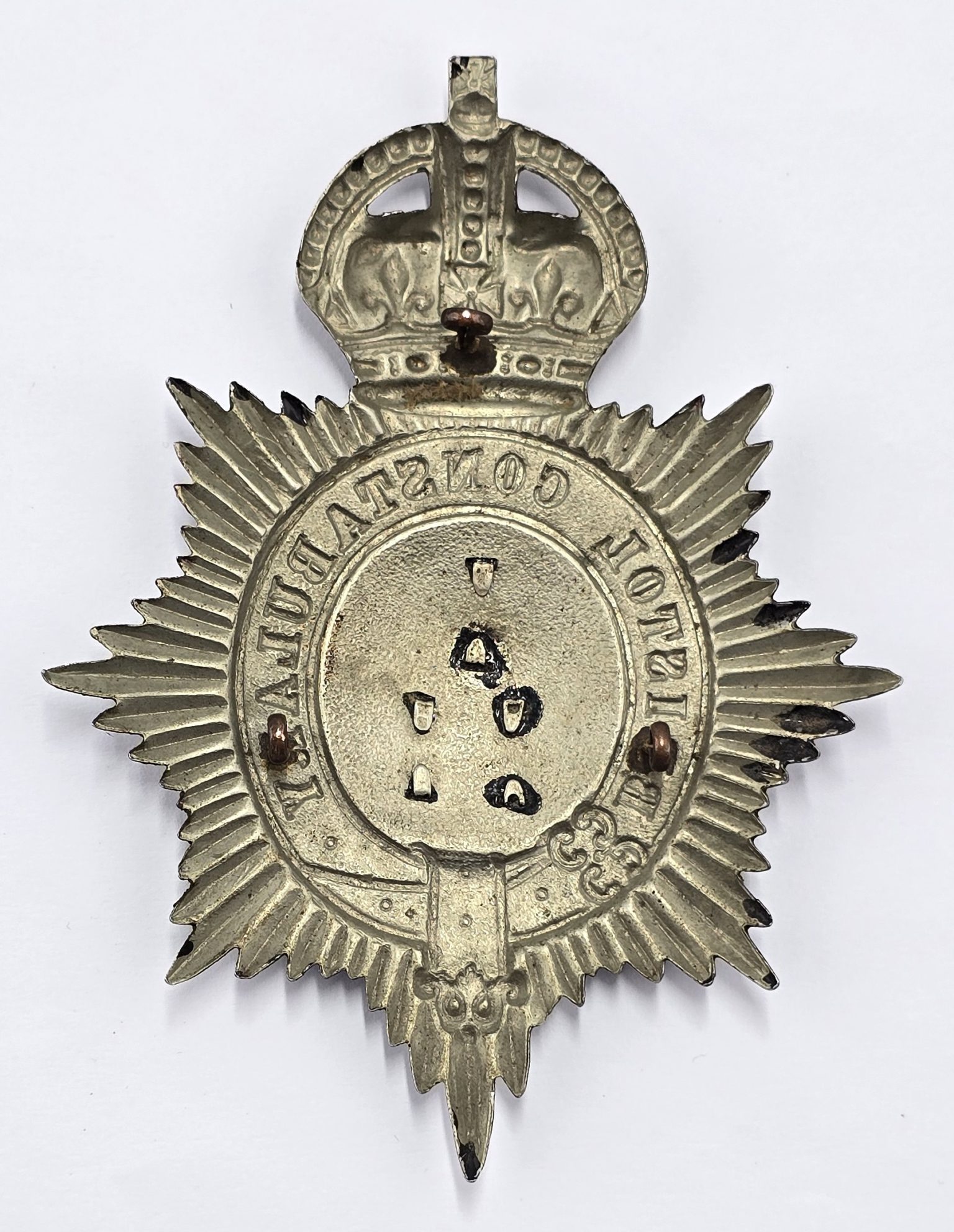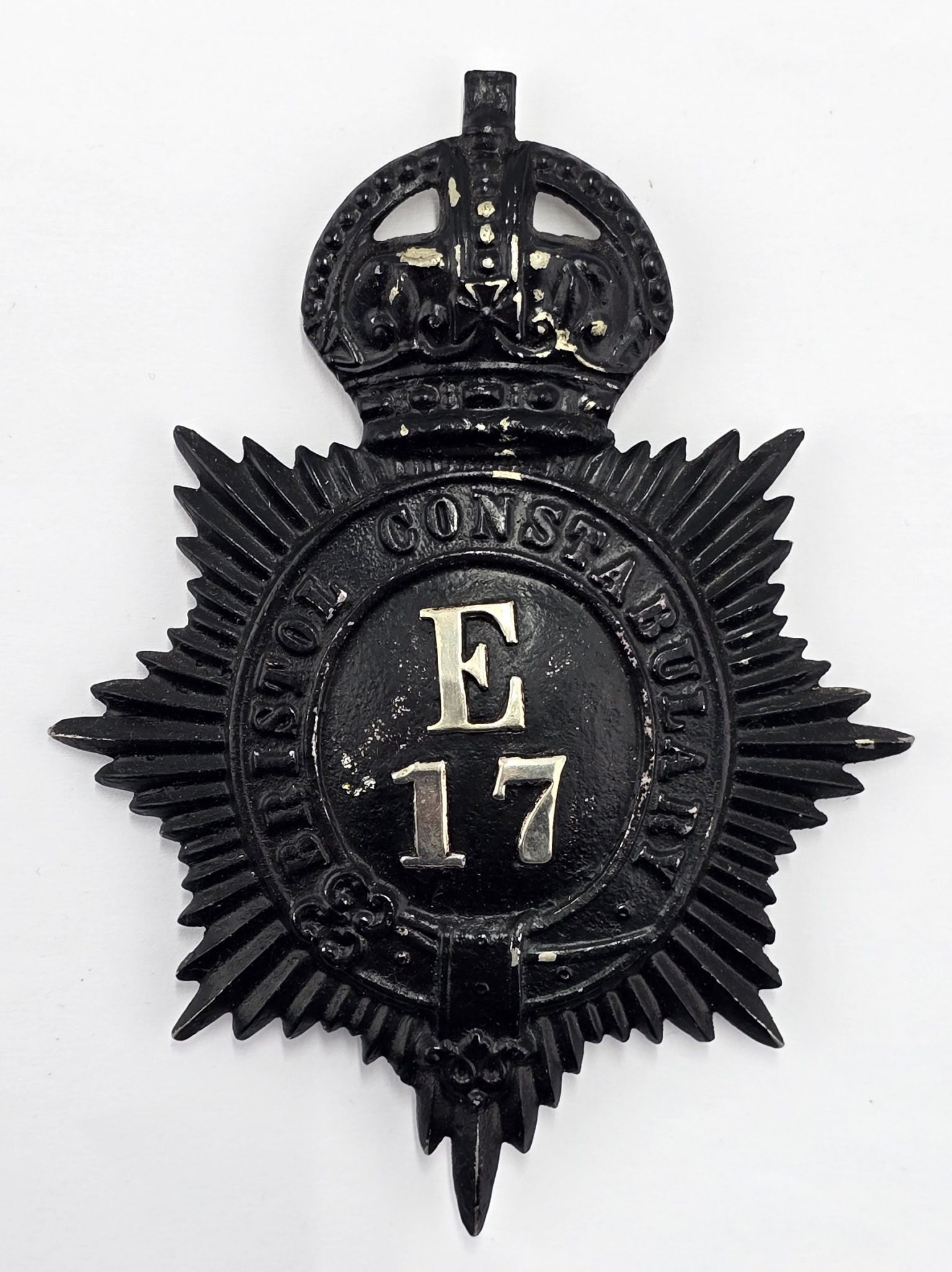 Early Kings crown helmet badge with E17 to centre with three lugs to back in good condition.