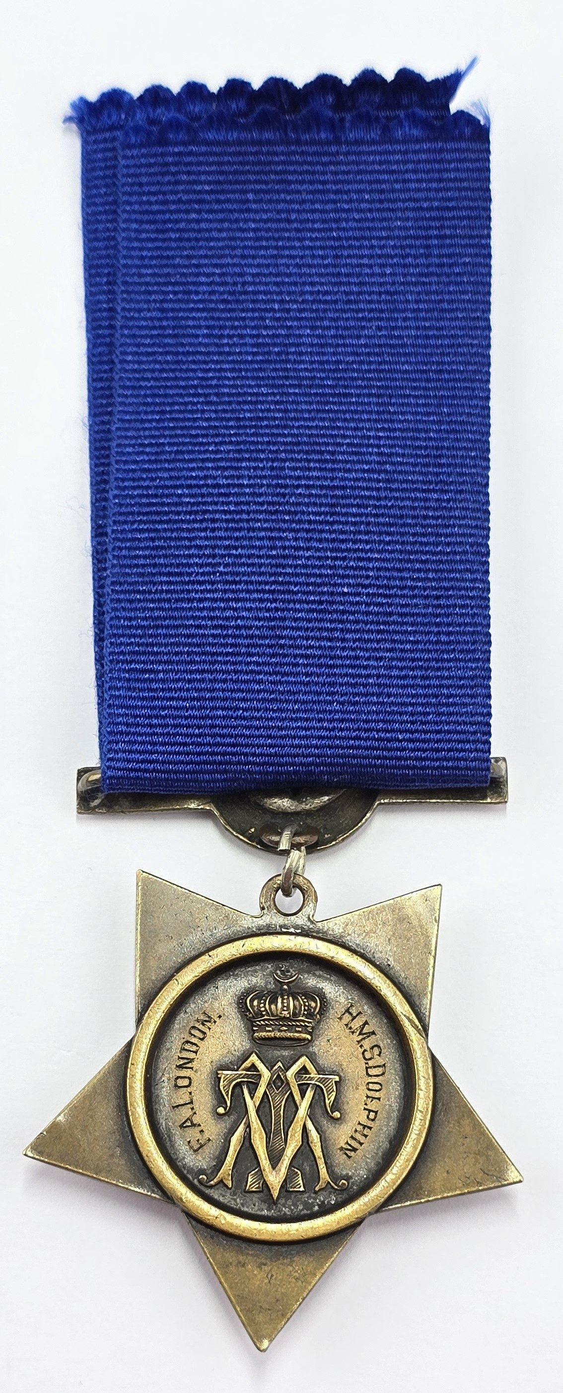 Large size medal with ribbon and F.A.LONDON H.M.S.DOLPHIN to back in good condition.