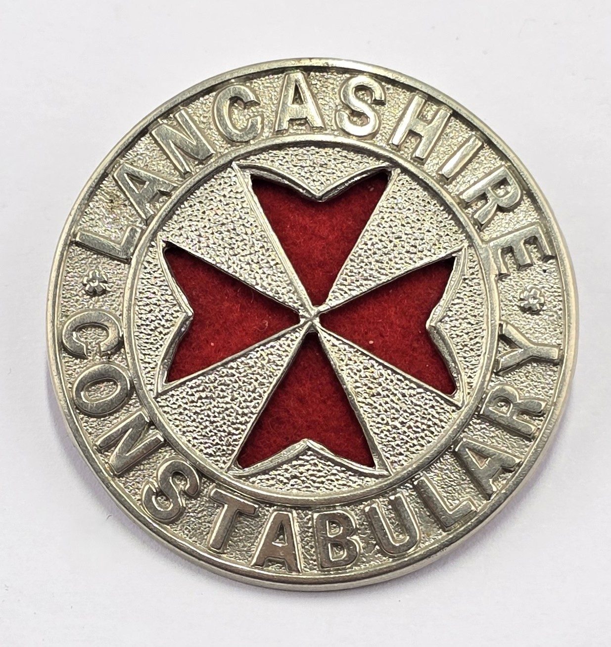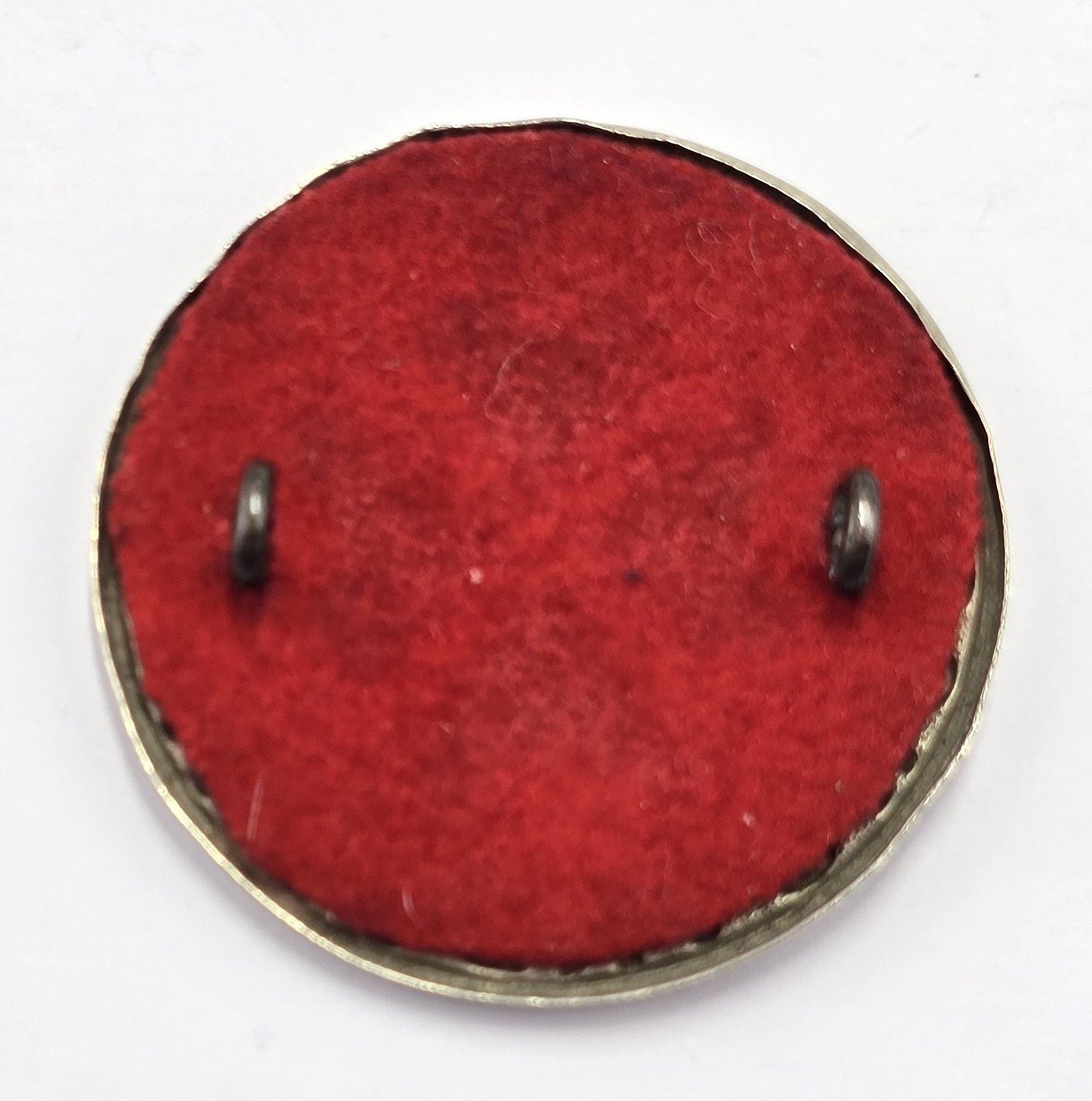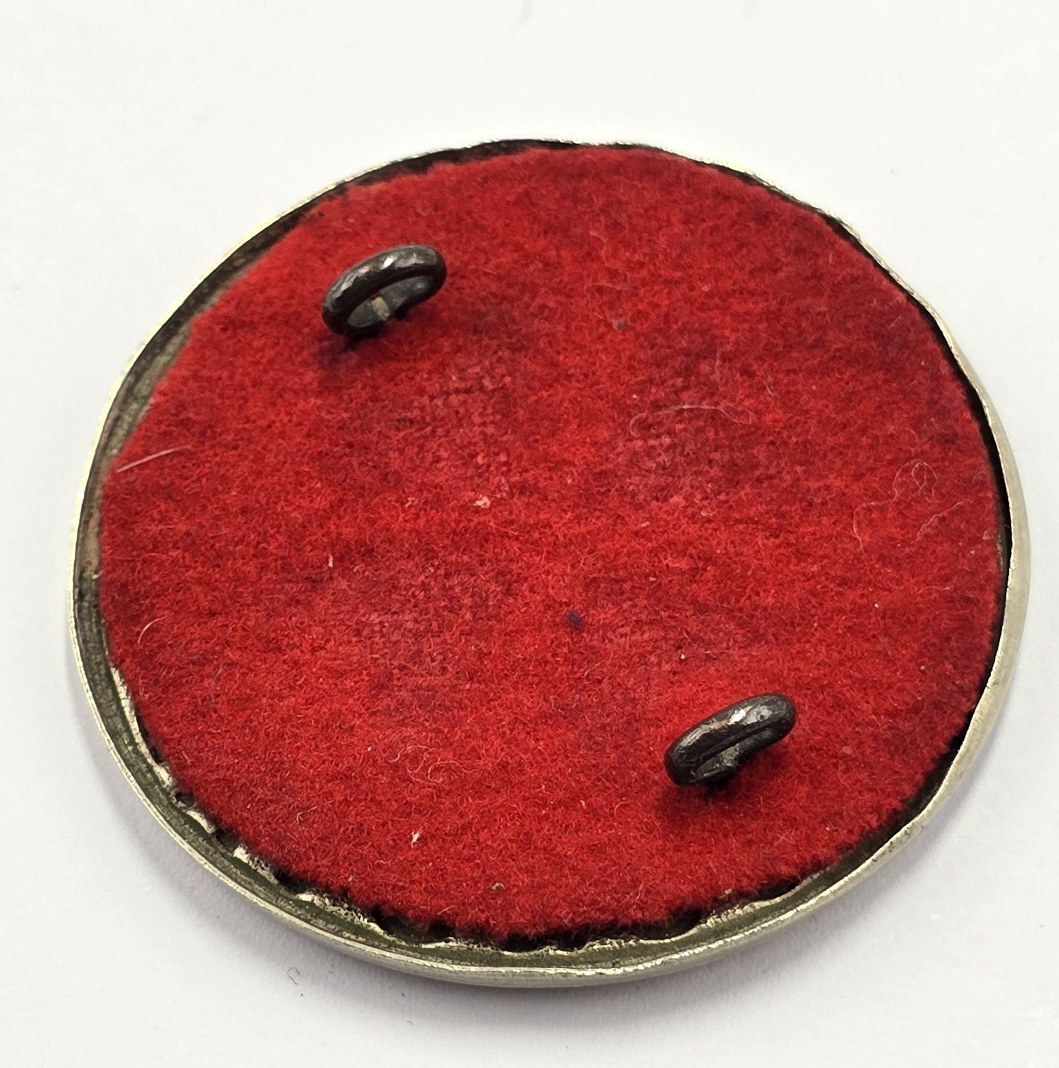 White metal badge with two lugs to back with red backing cloth in good condition.