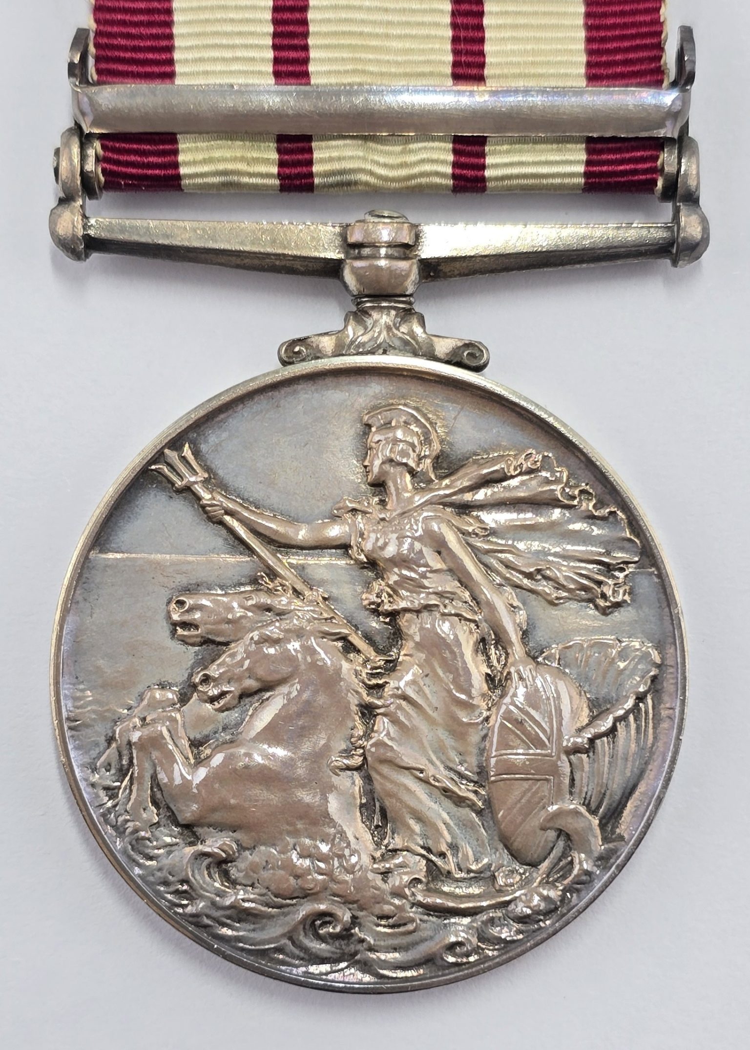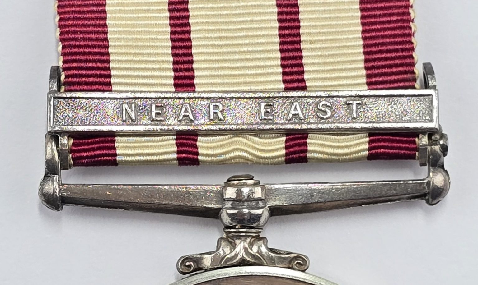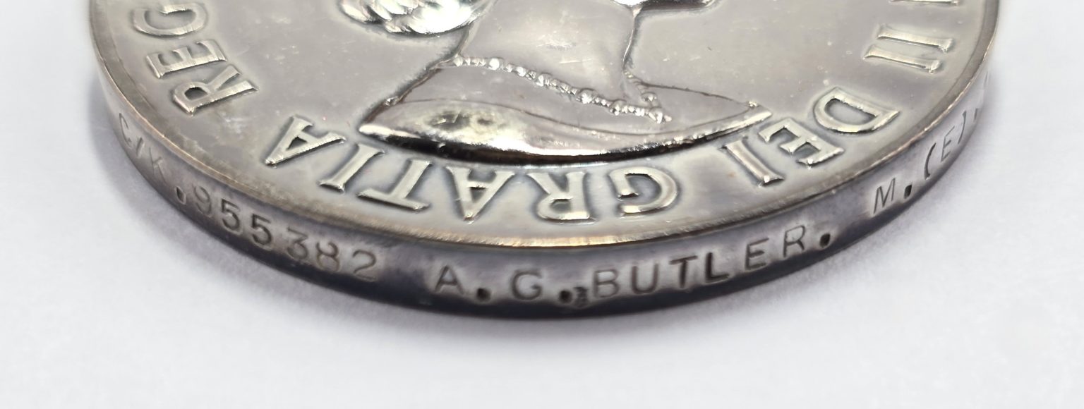 Large size medal with original ribbon with NEAR EAST bar stamped to rim C/K.955382 A.G.BUTLER.M.(E).1.R.N. in good condition.