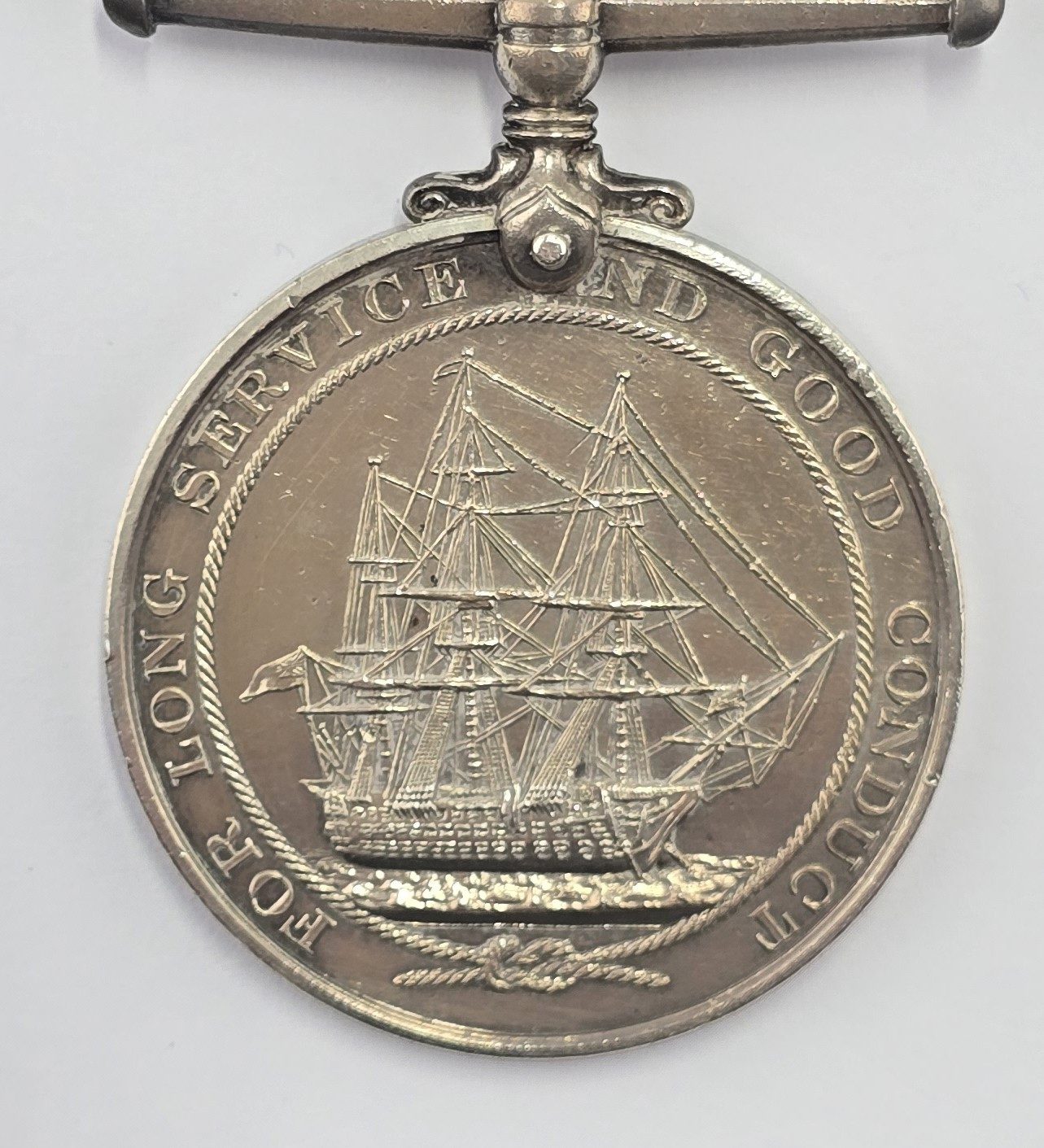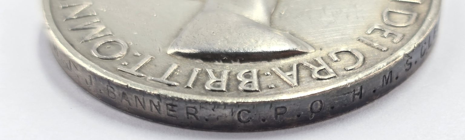 Large size medal with original ribbon stamped to rim JX1150703 H.J.J.BANNER.C.P.O.H.M.S.CLEOPATRA.in used condition.