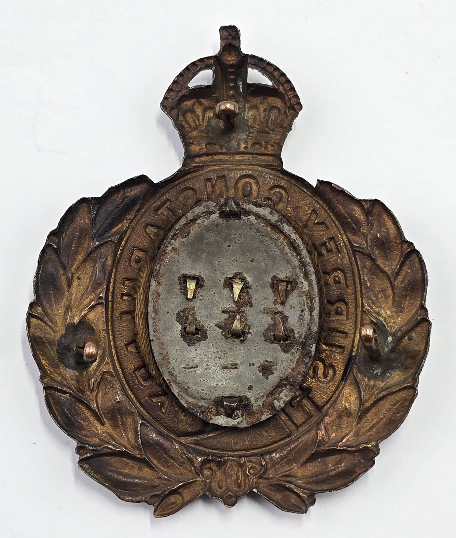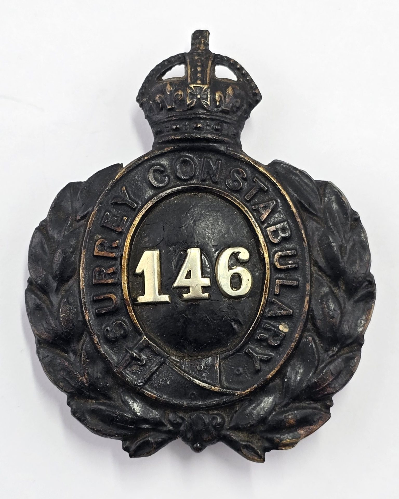 Kings crown helmet badge with number 146 in the centre in white metal with three lugs to back in good condition.