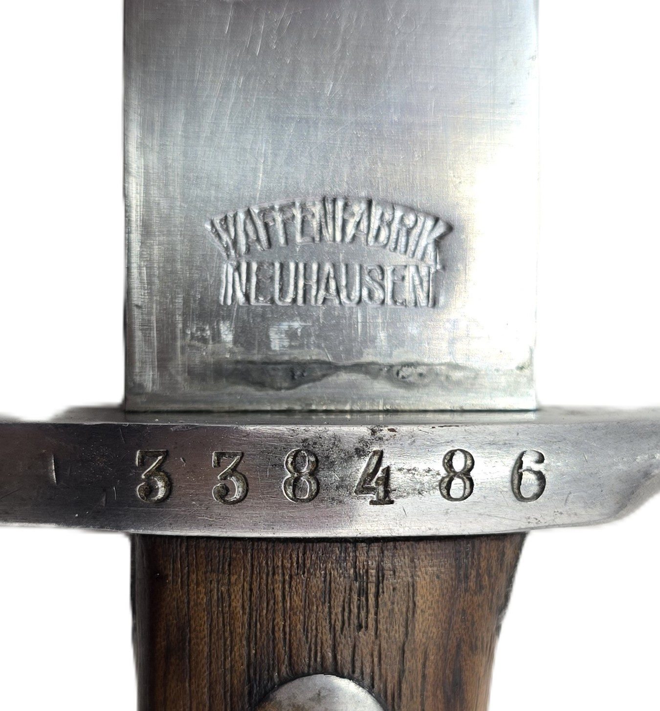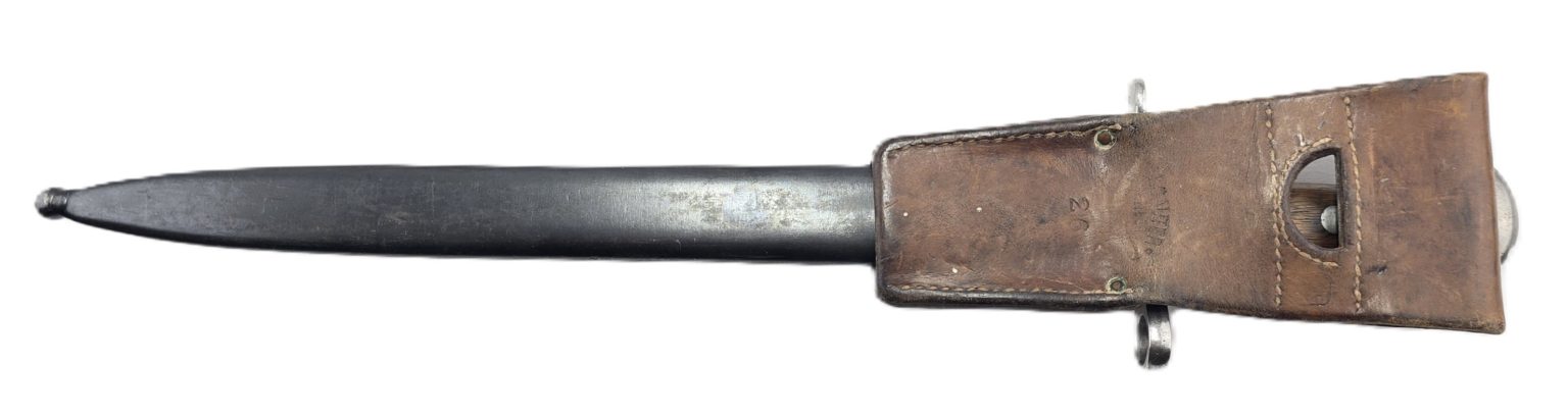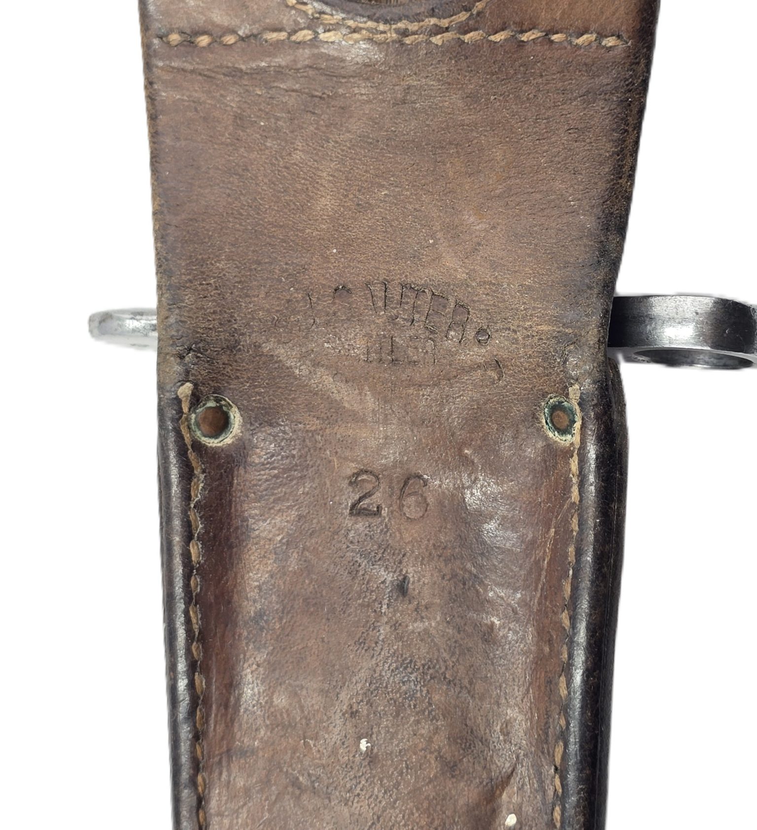 Bayonet is in good condition, in original scabbard with leather frog which is maker stamped to back.Please note you must be over 18 Years old to purchase any Bladed item. ID is needed on the first purchase. Sorry we can no longer send any bladed items over sea.
