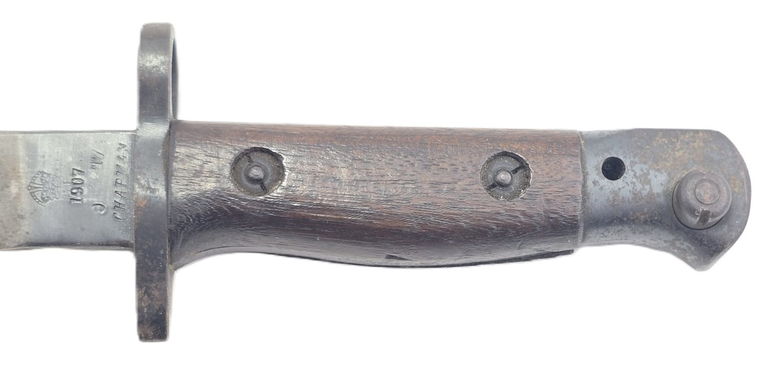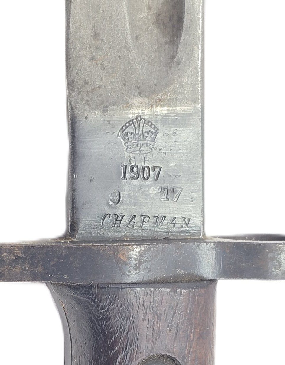 Blade is armour stamped and maker to blade CHAPMAN, complete with scabbard, in all round good used condition.Please note you must be over 18 Years old to purchase any Bladed item. ID is needed on the first purchase. Sorry we can no longer send any bladed items over sea.