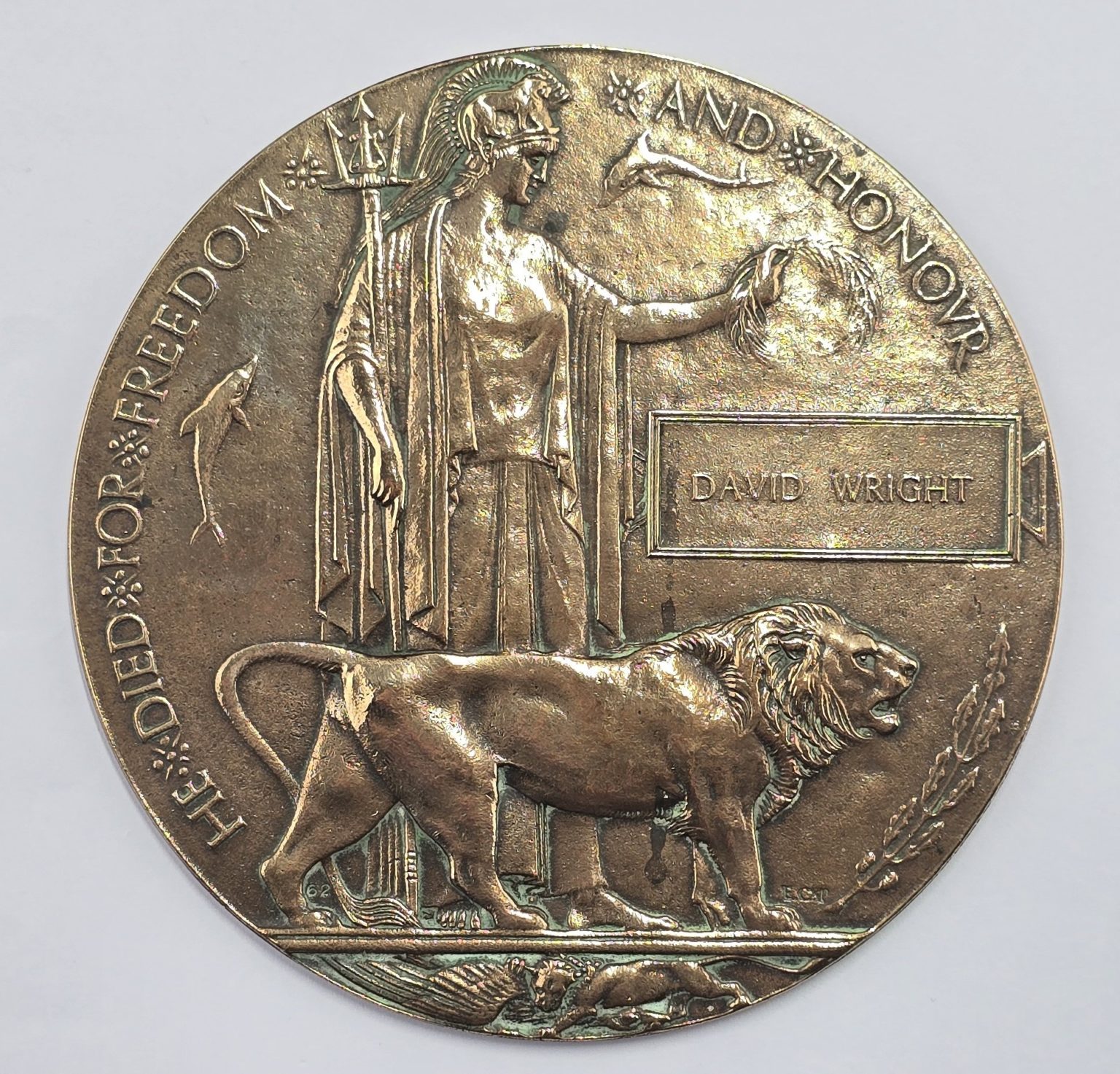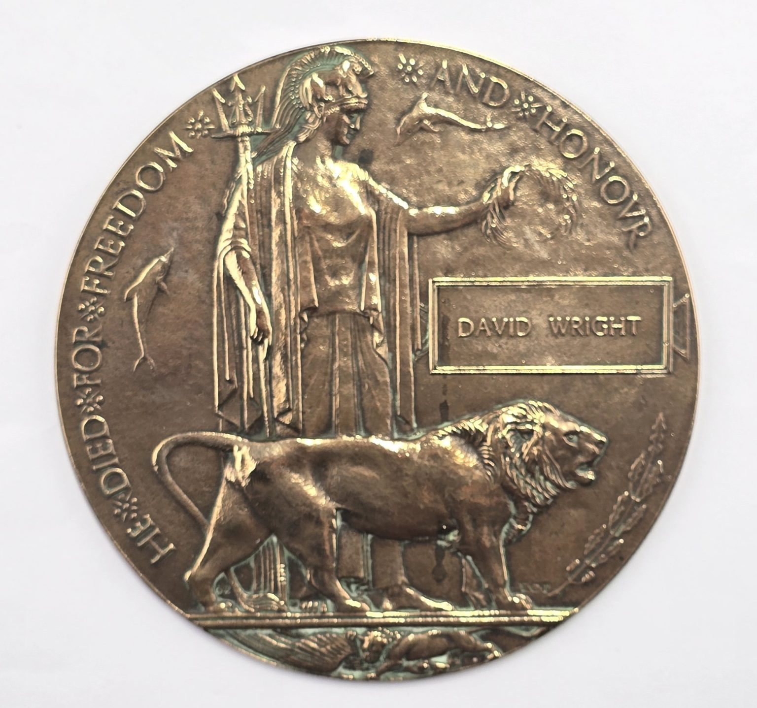WW1 bronze plaque in the name of DAVID WRIGHT in good used condition.
