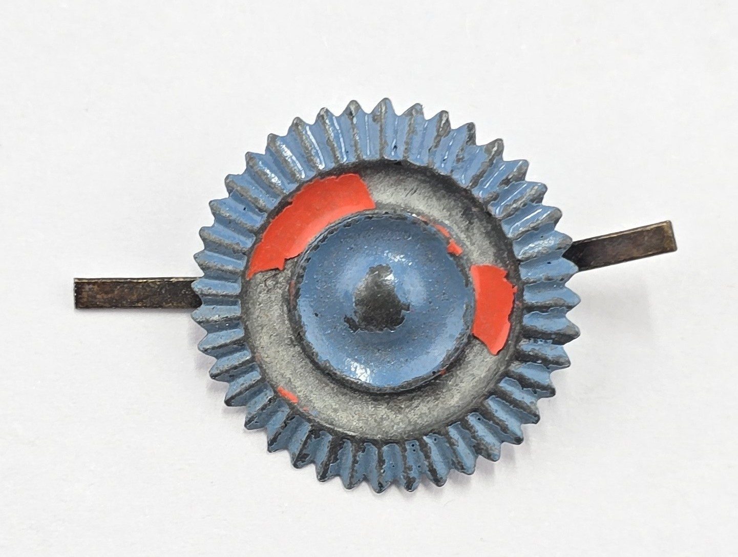 WW1 German painted metal cockade badge with two prongs to back in used condition.