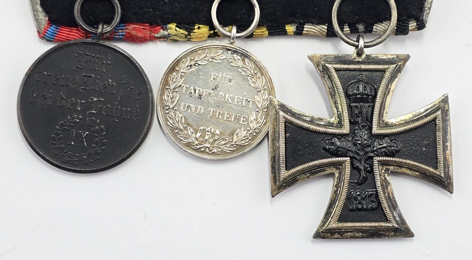 Large size medals with original ribbons on wearing bar in good condition.