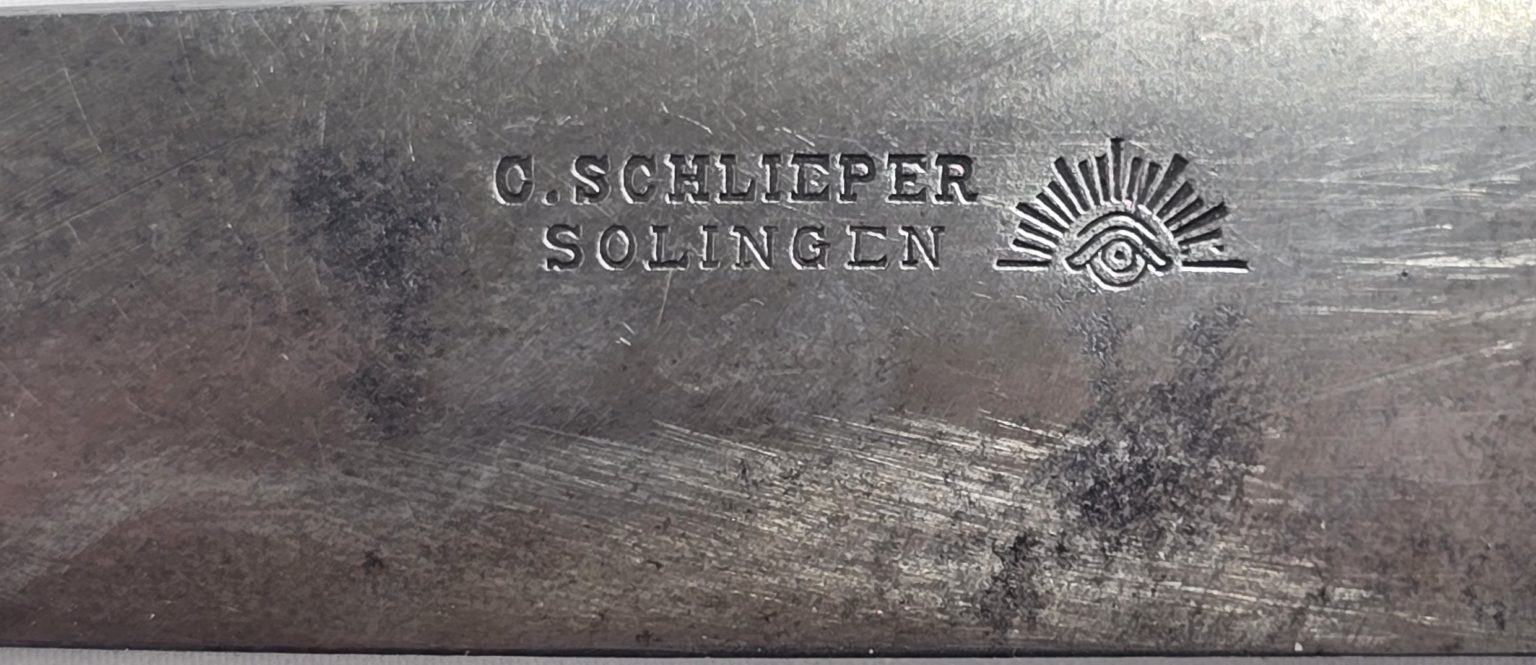 Quality made with 16 cms blade stamped C.SCHLIEPER SOLINGEN and makers mark and total length 26 cms in overall good used condition.