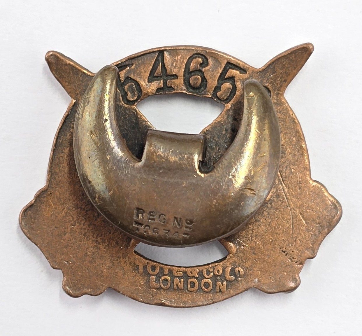 Bronze badge with button hole fixing and maker to back, stamped with issue number 5465, in good used condition.