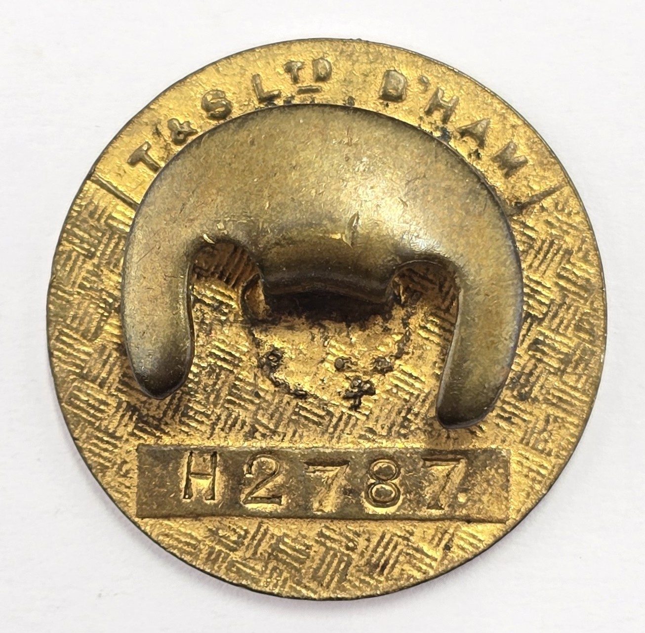 Brass badge with button hole fixing to back,with maker and issue number H2787, in good used condition.