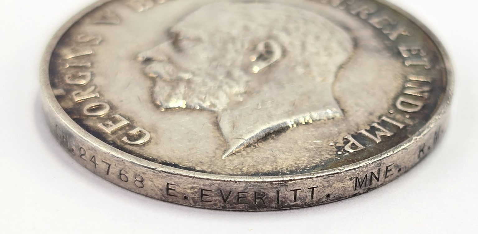 Large size medal with original ribbon stamped to rim CH.24768E.EVERITT.MNE.R.M. in good condition.