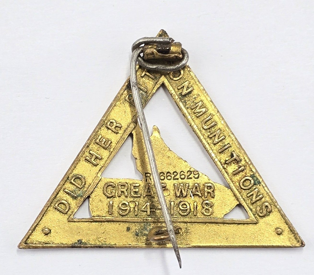 Super quality enamel badge with pin and impressed in relief 'DID HER BIT ON MUNITIONS GREAT WAR 1914 -1918' to back in good condition.