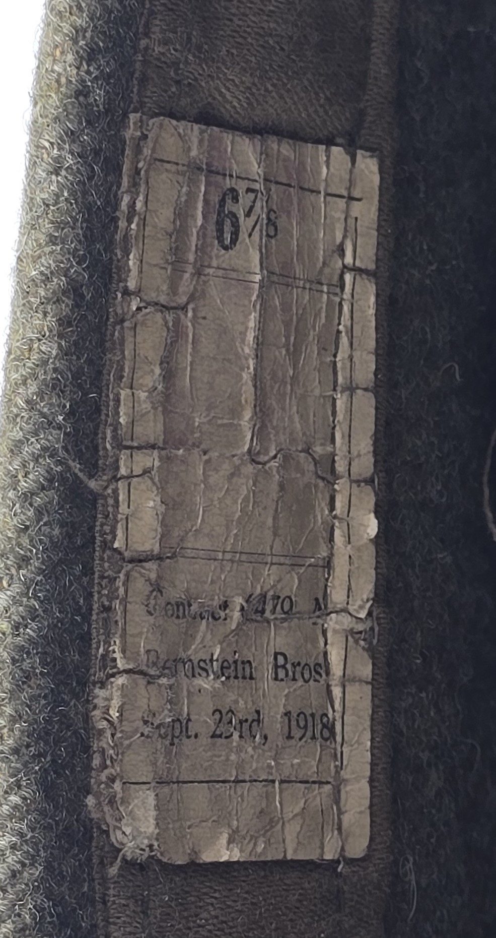 WW1 US side hat with label inside with details dated 1918 in good all round condition.
