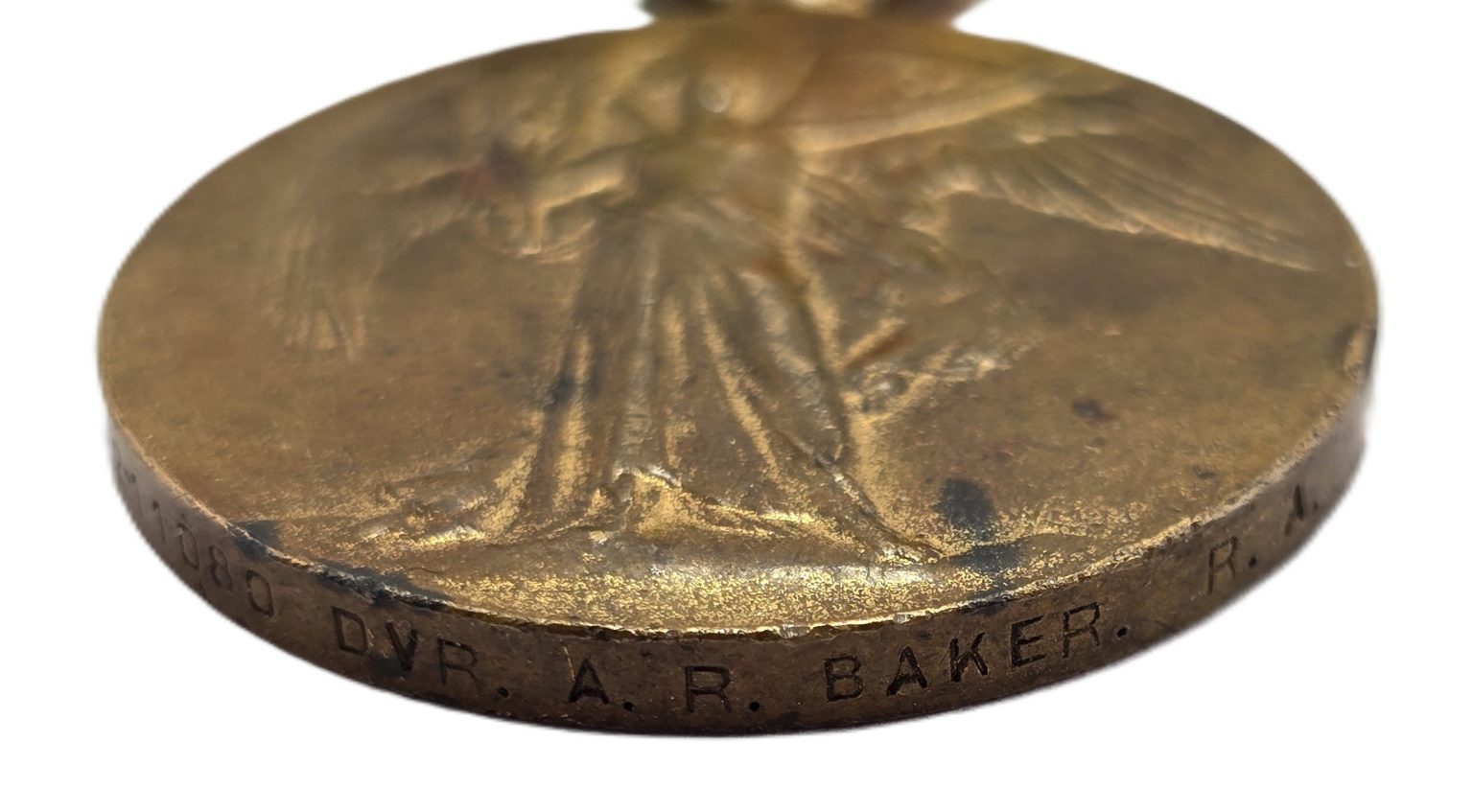 Large size medal with a good length of original ribbon stamped to rim 211080 DVR.A.R.BAKER.R.A. in good condition.