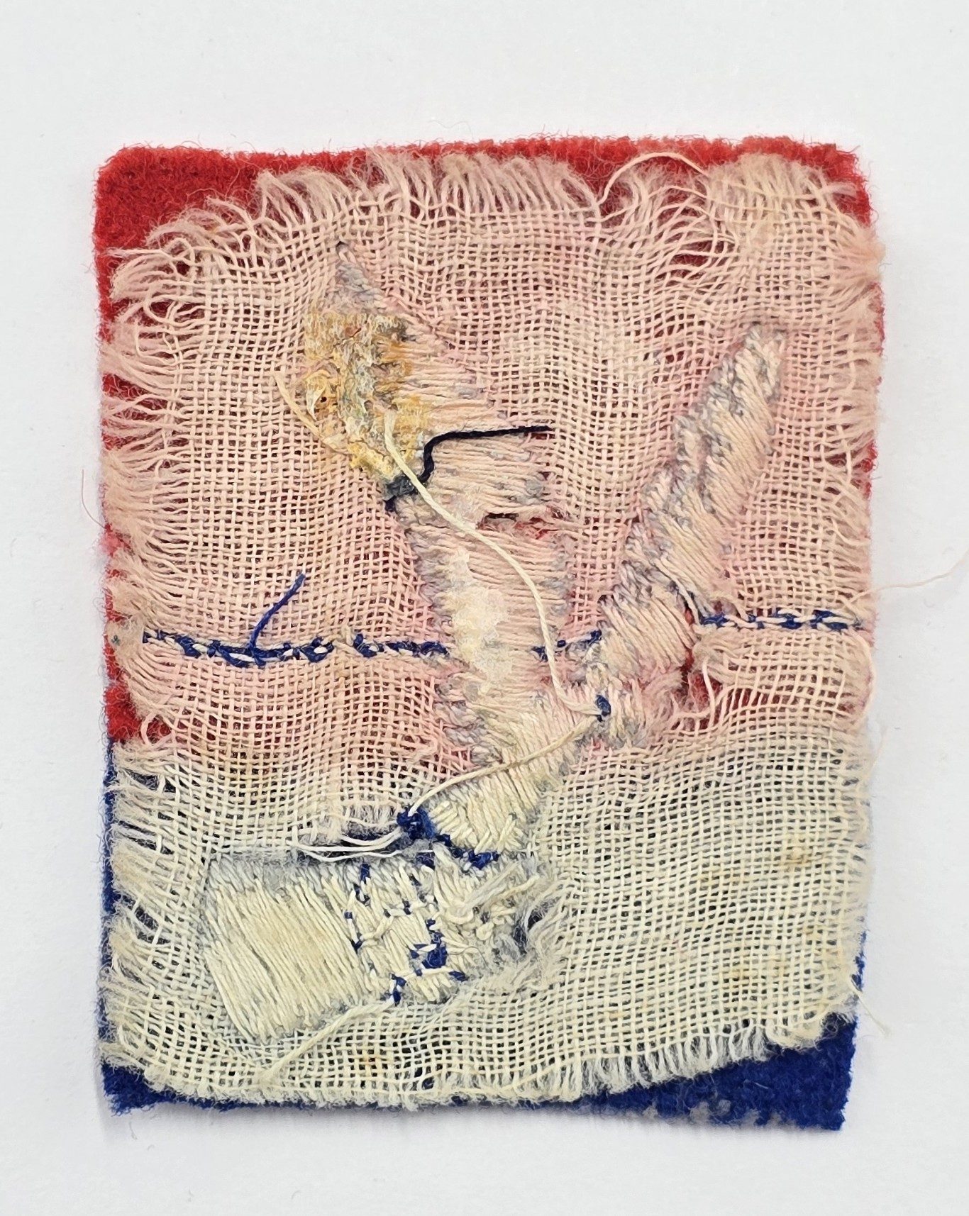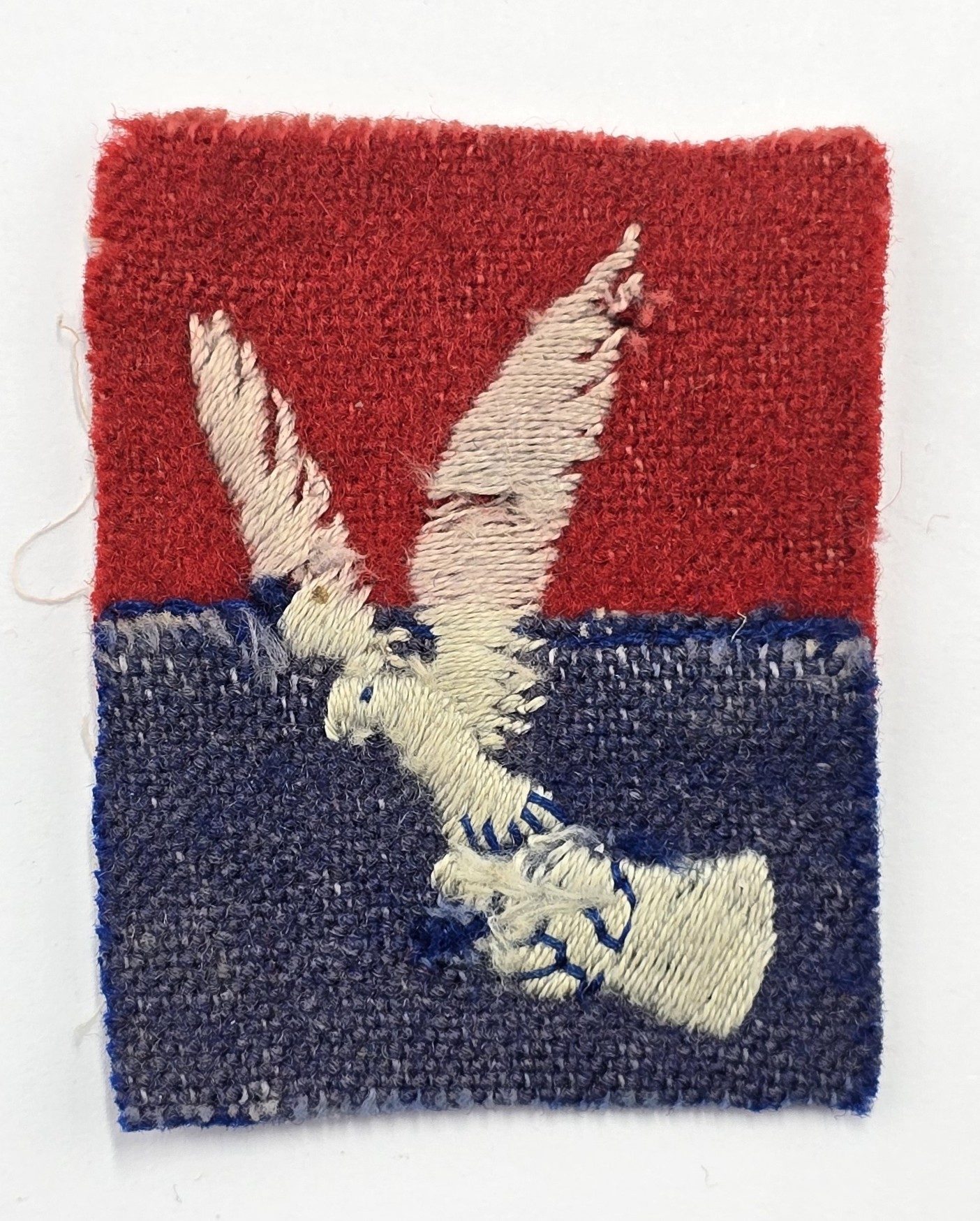 Stitched felt badge with backing cloth in used condition.