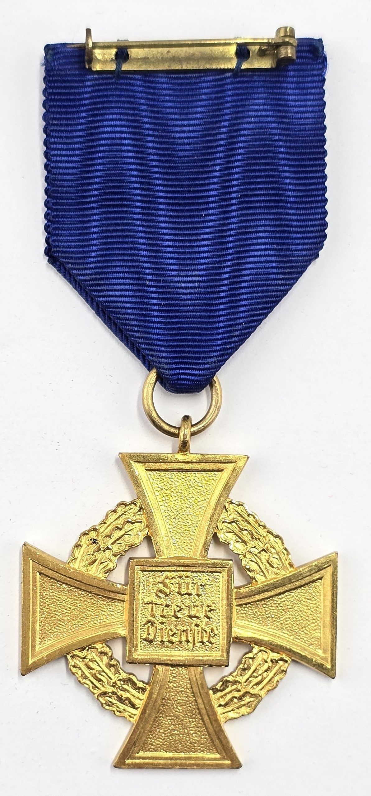 Large size gilt medal with original ribbon with pin to back in good condition.