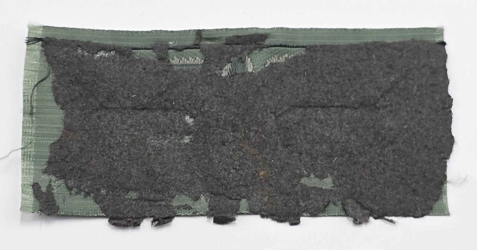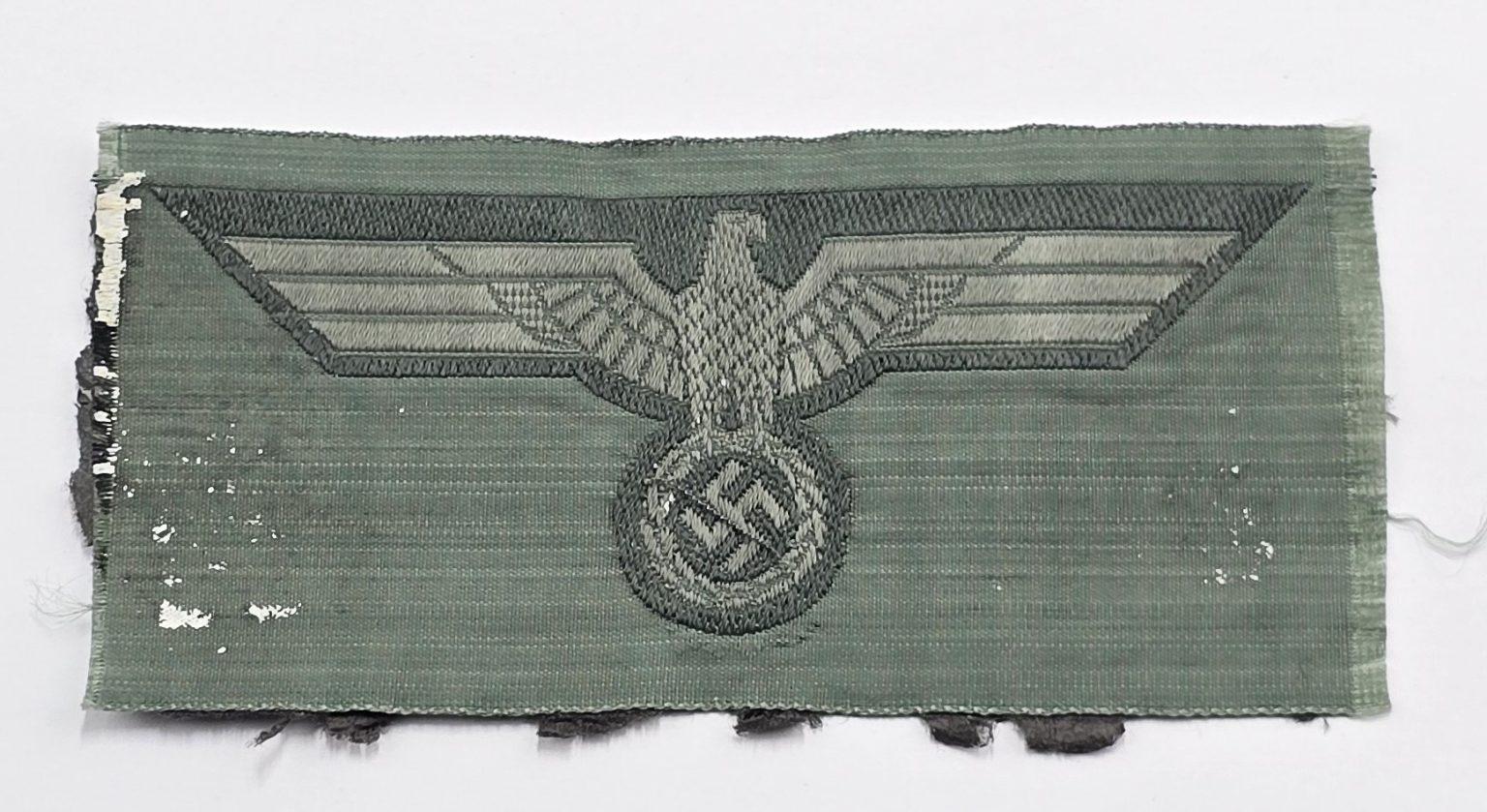 Uncut Bevo woven army breast eagle and swastika removed from photograph album in used condition.
