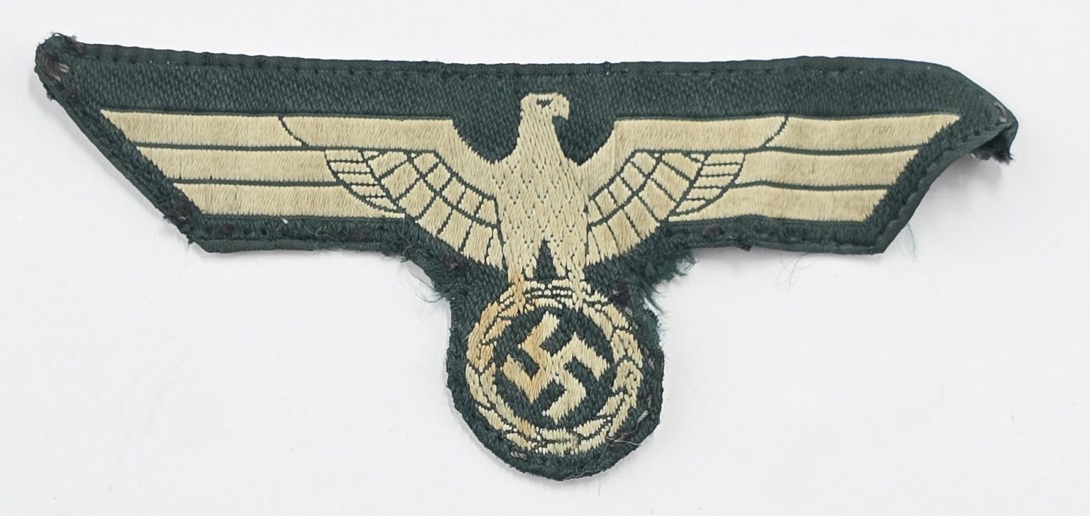WW2 German Bevo woven army breast eagle and swastika, removed from uniform in good condition.