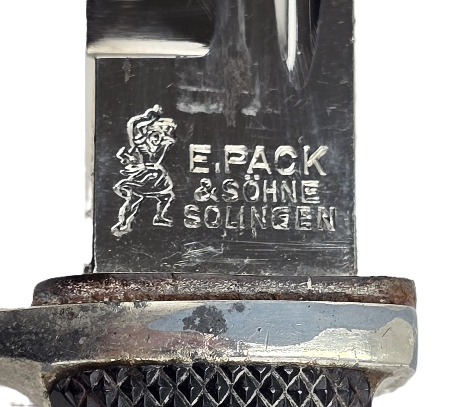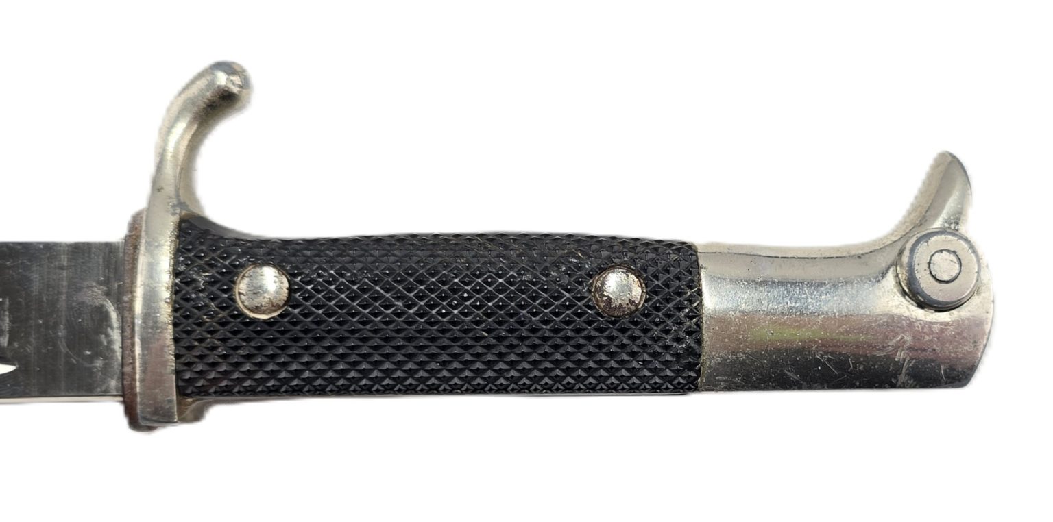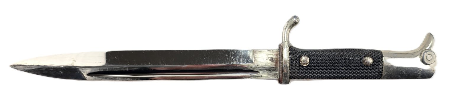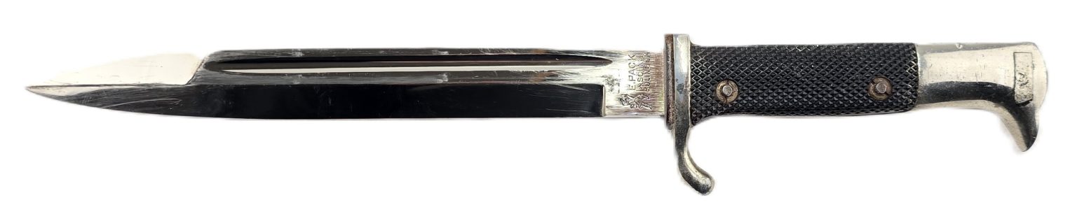WW2 German short type dress bayonet,maker to blade, complete with scabbard,in all round good used condition. Please note you must be over 18 Years old to purchase any Bladed item. ID is needed on the first purchase. Sorry we can no longer send any bladed items over sea.