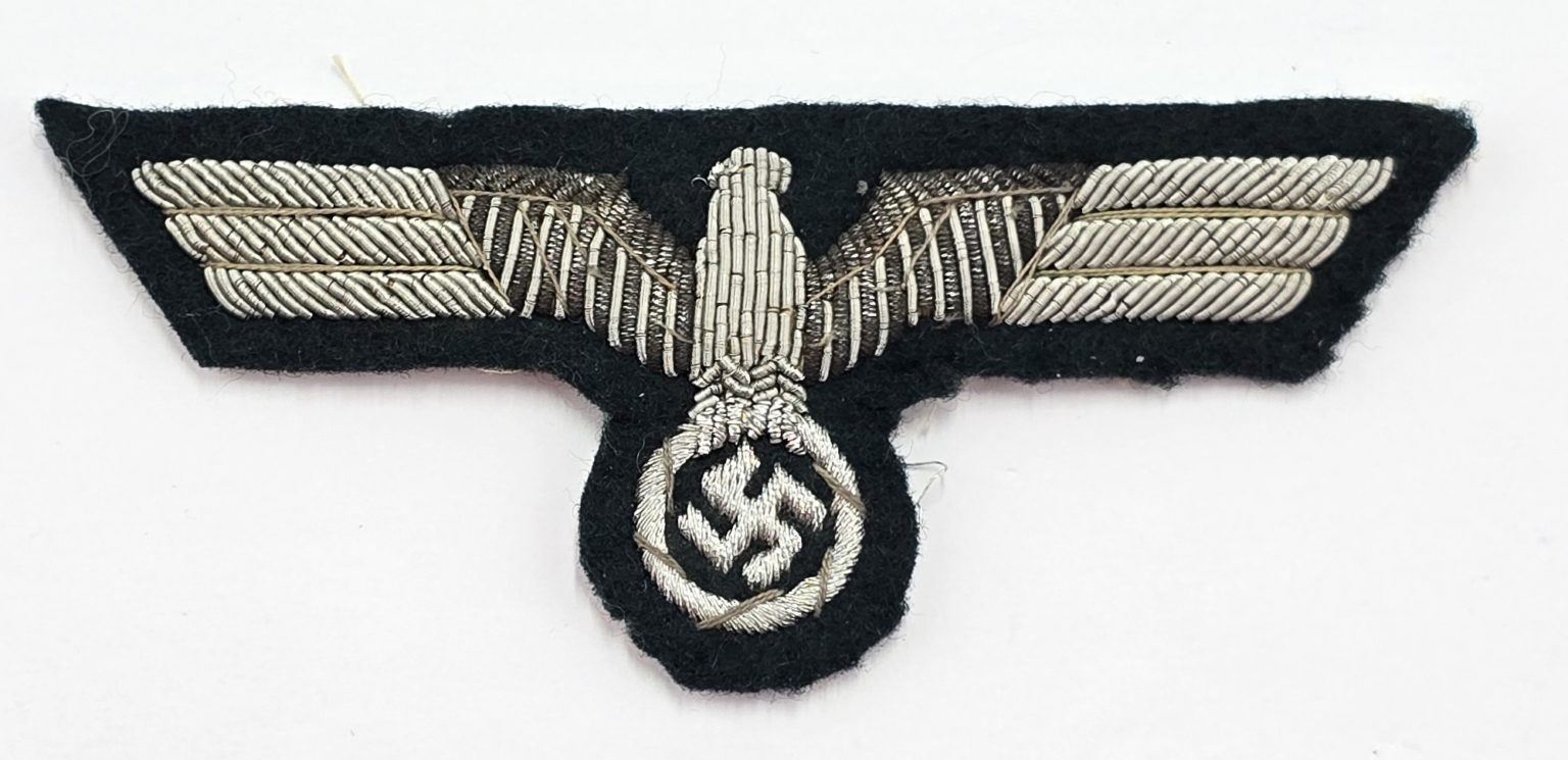 WW2 German quality made heavy silver wire officers breast eagle and swastika in very good condition.