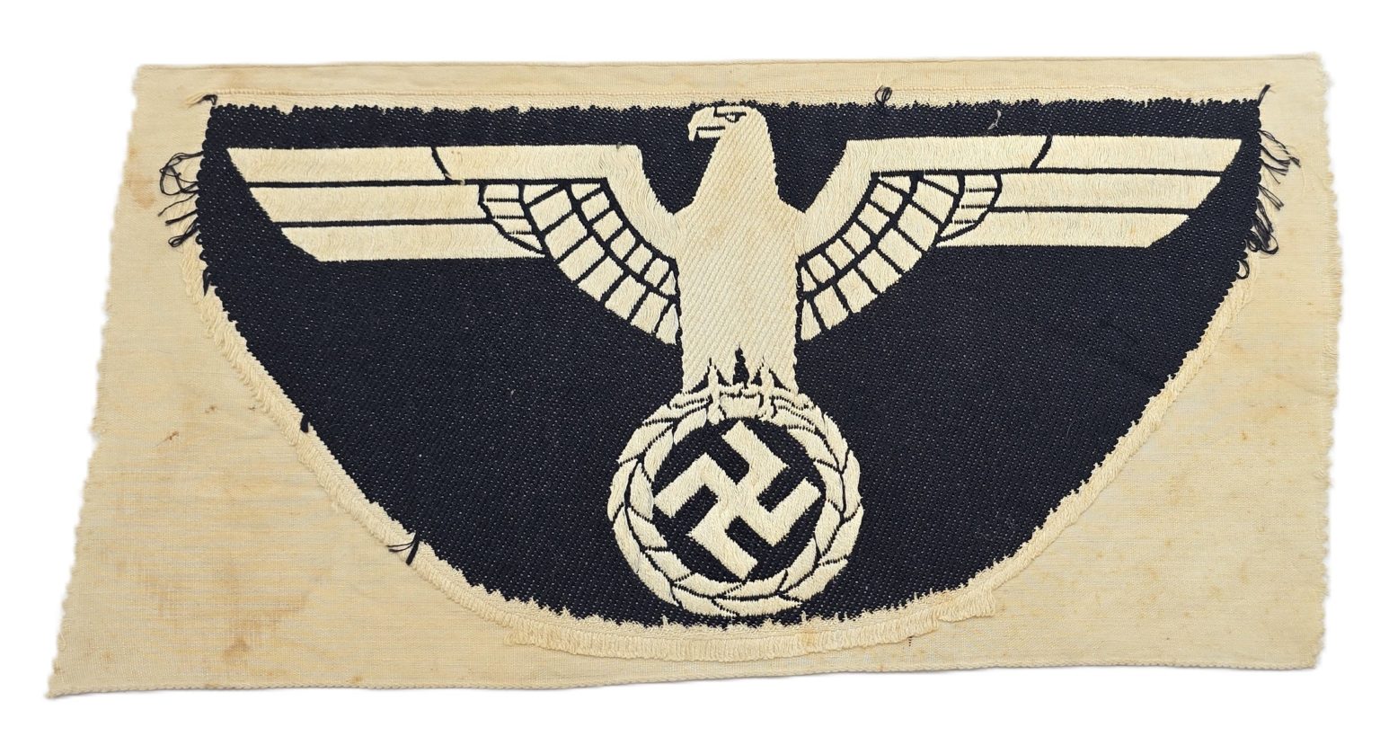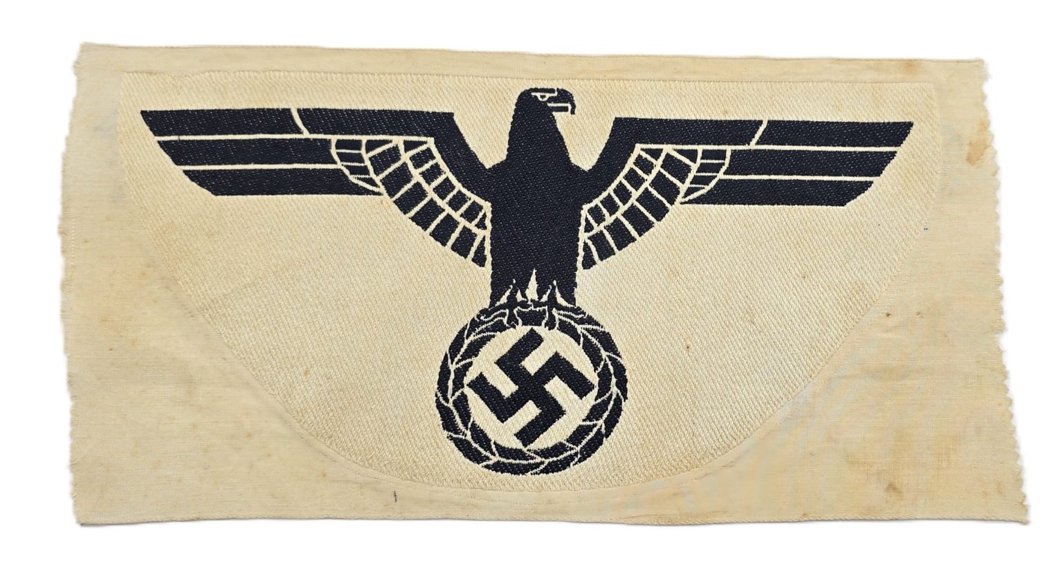Large Bevo woven black eagle and swastika, uncut in good used condition.