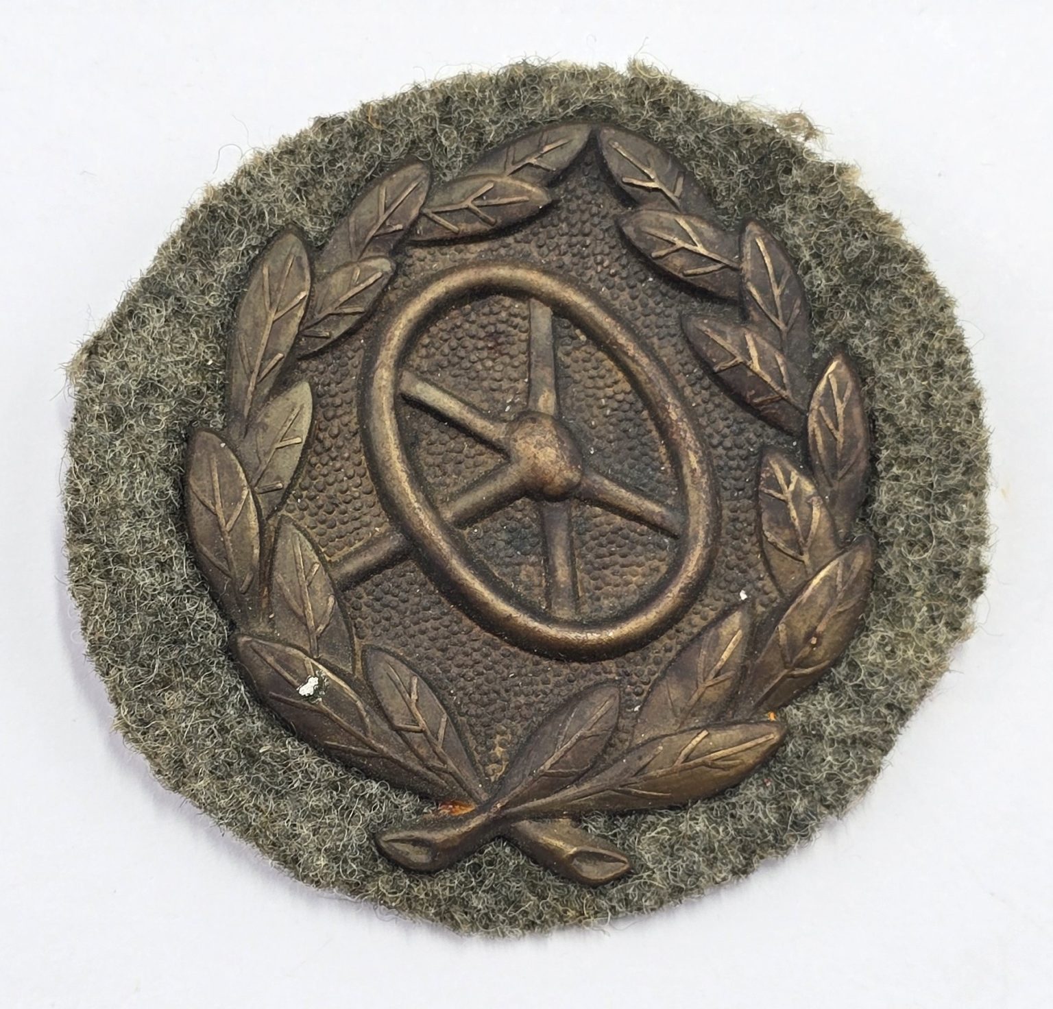 WW2 German drivers badge on combat green felt complete with back plate in used condition.