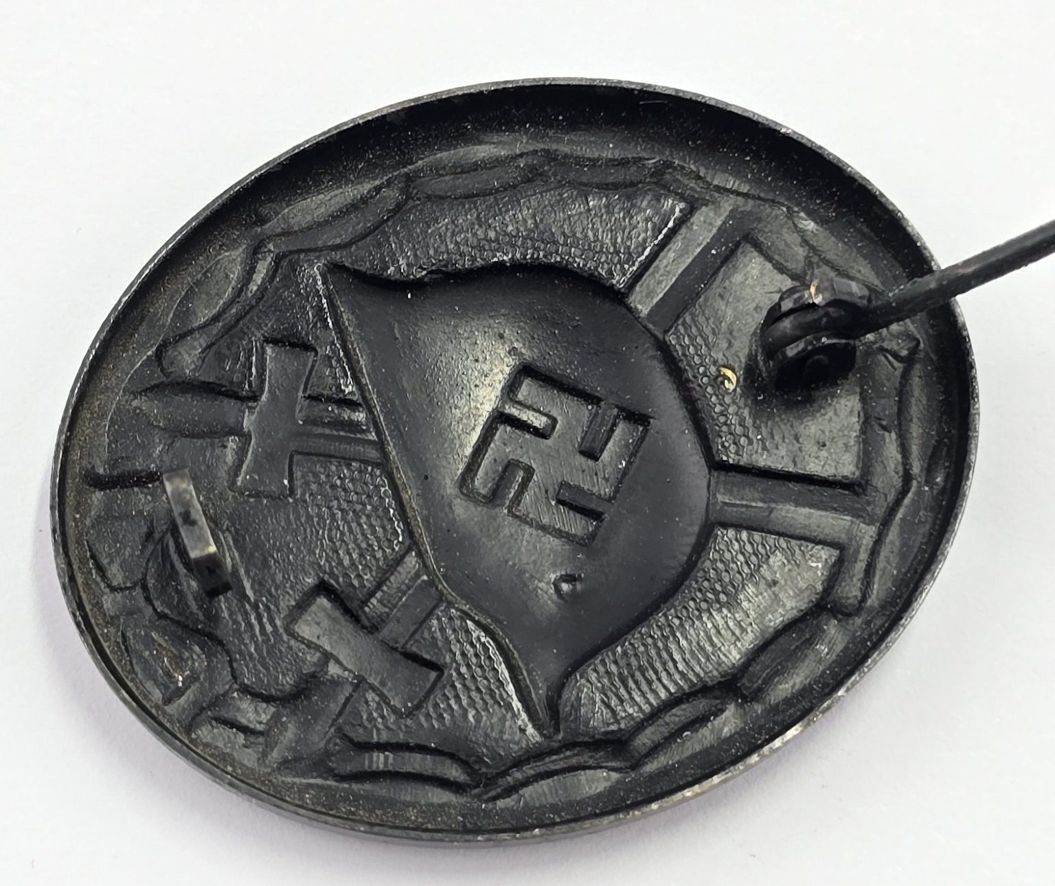 WW2 German early black painted brass badge with pin and catch to back in good used condition.