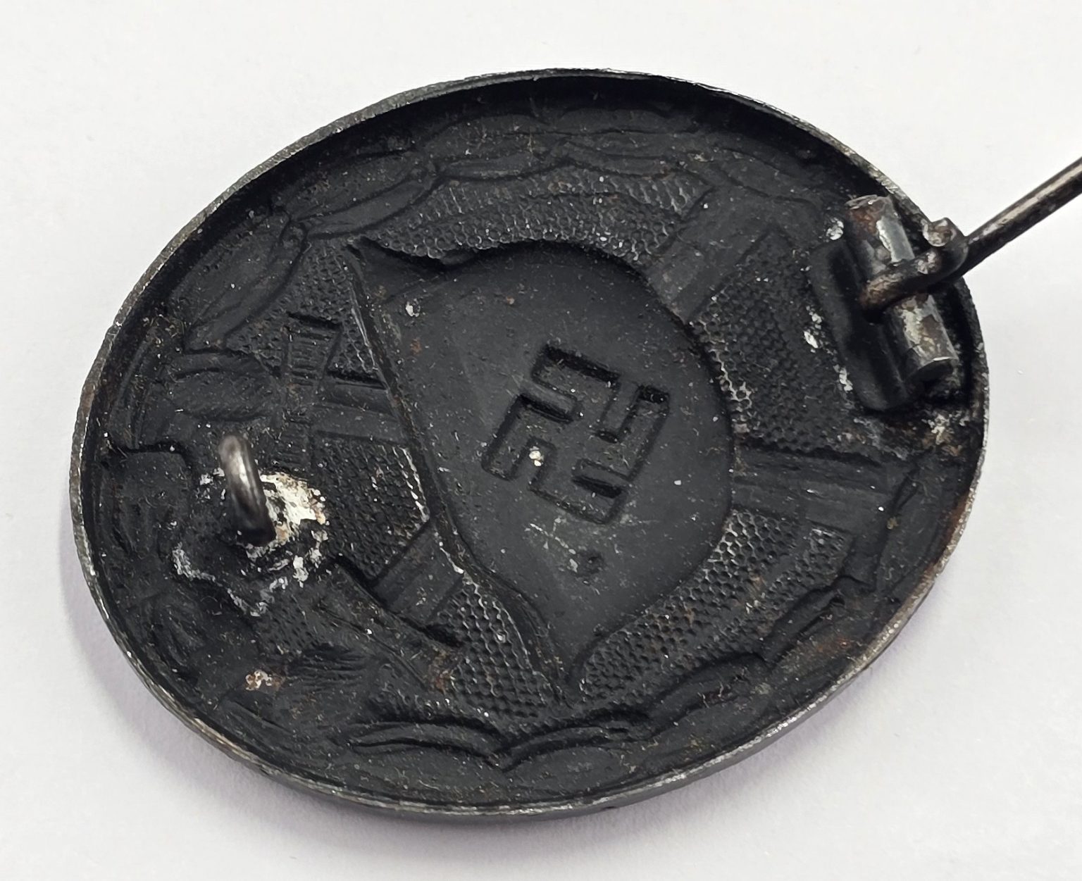 WW2 German steel black painted badge with pin and catch to back in good condition.