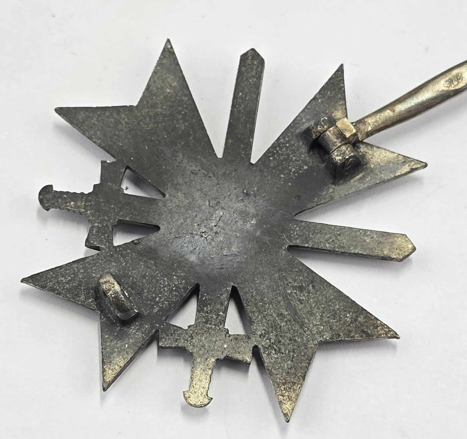 WW2 German War Merit Cross withswords with pin and catch to back,a clear '4' stamped into the pin for Steinhauer & Lück. Some tarnishing to the award and wear to the outer case,in box of issue in all used condition.