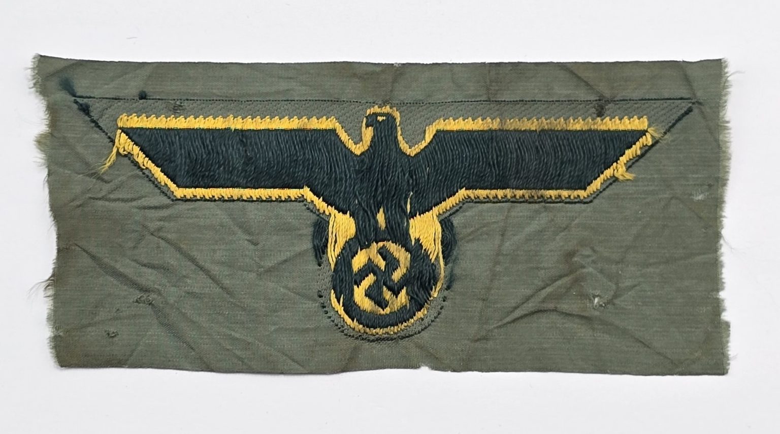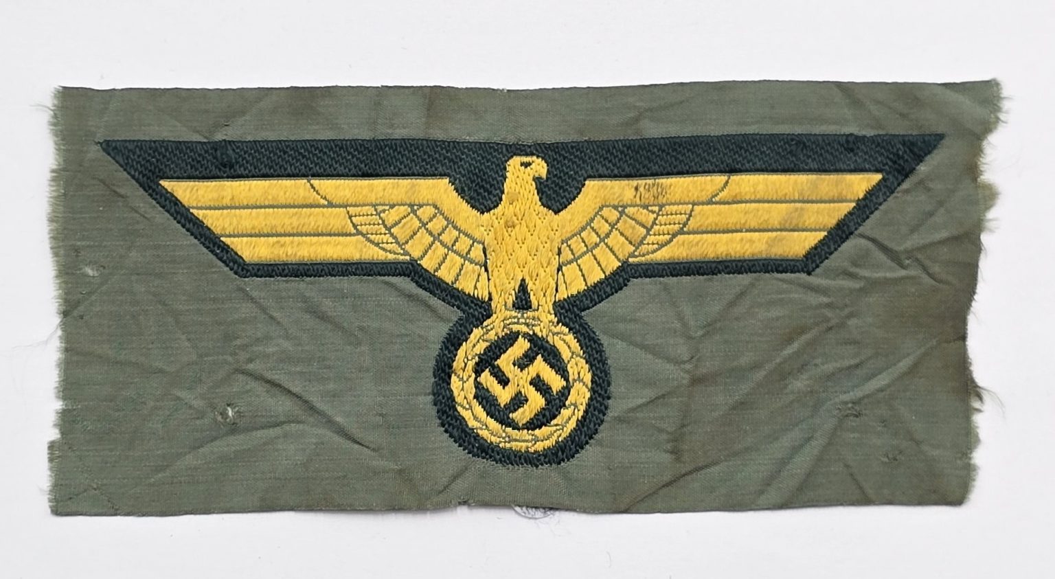WW2 German uncut Bevo woven breast eagle and swastika in good condition.