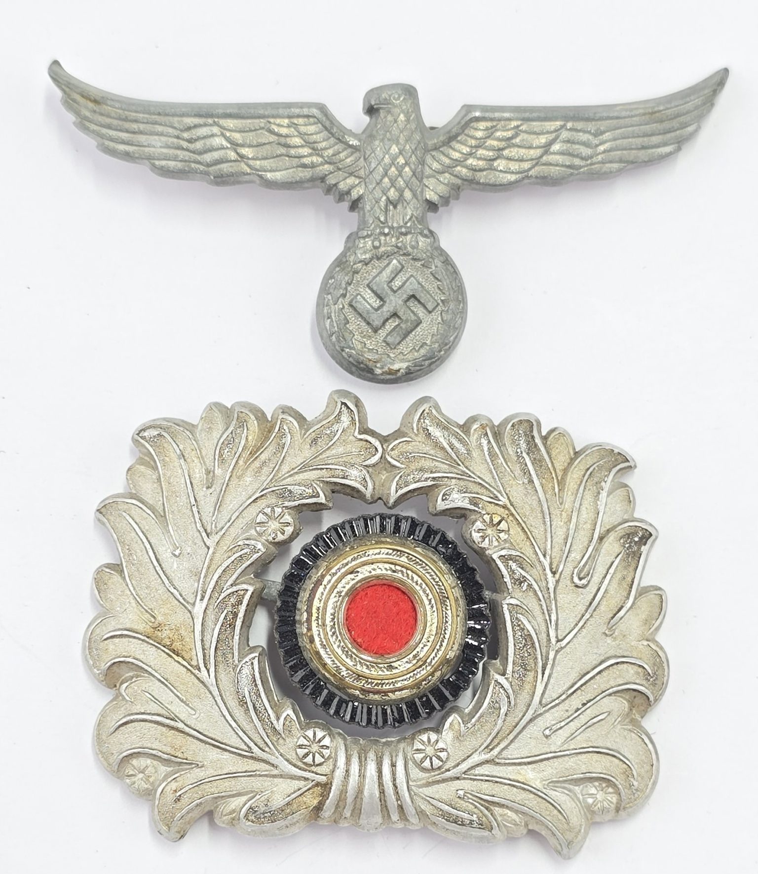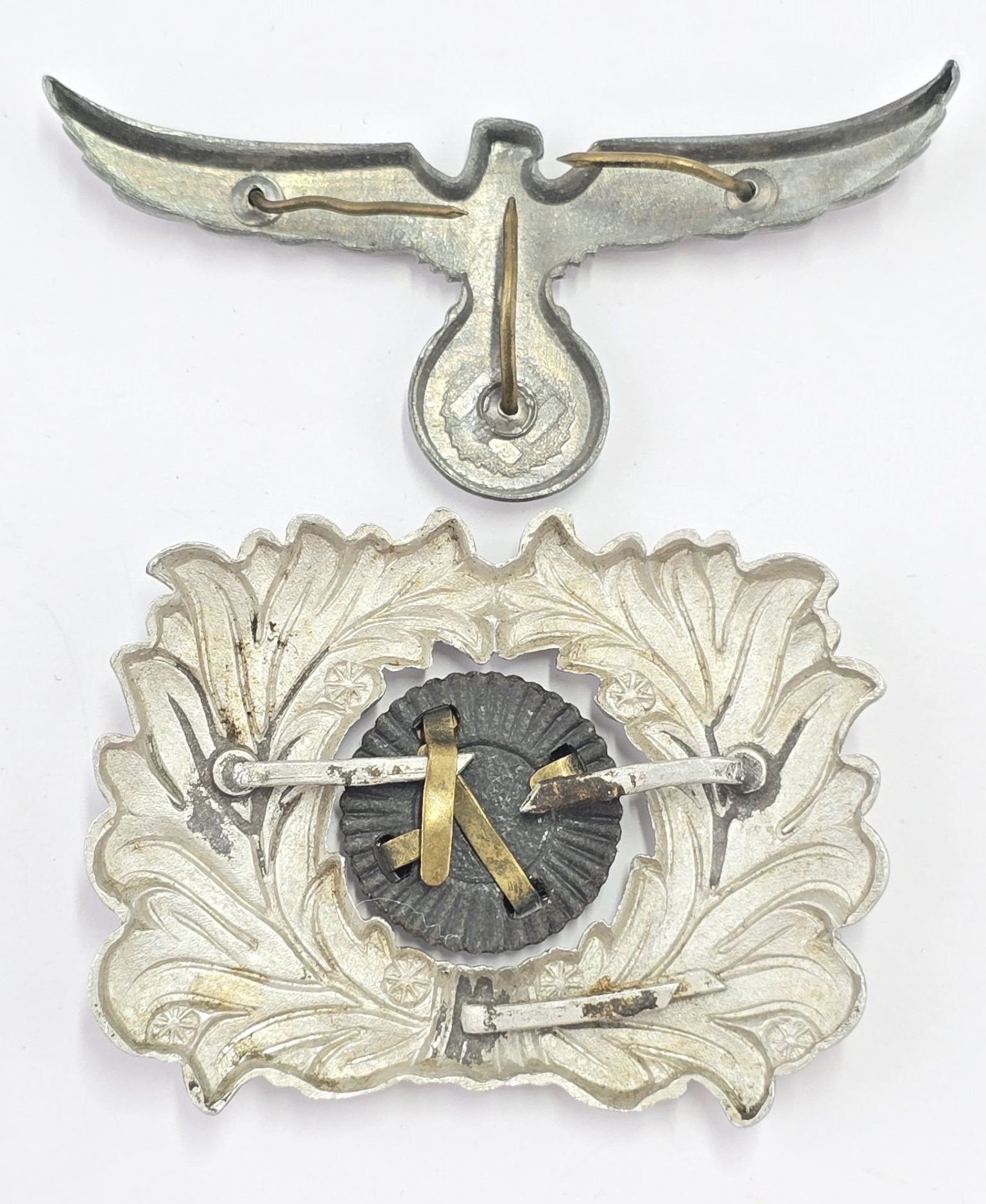 WW2 German Customs two piece cap wreath and cockade with three pins to back with eagle with pins to back in used condition.