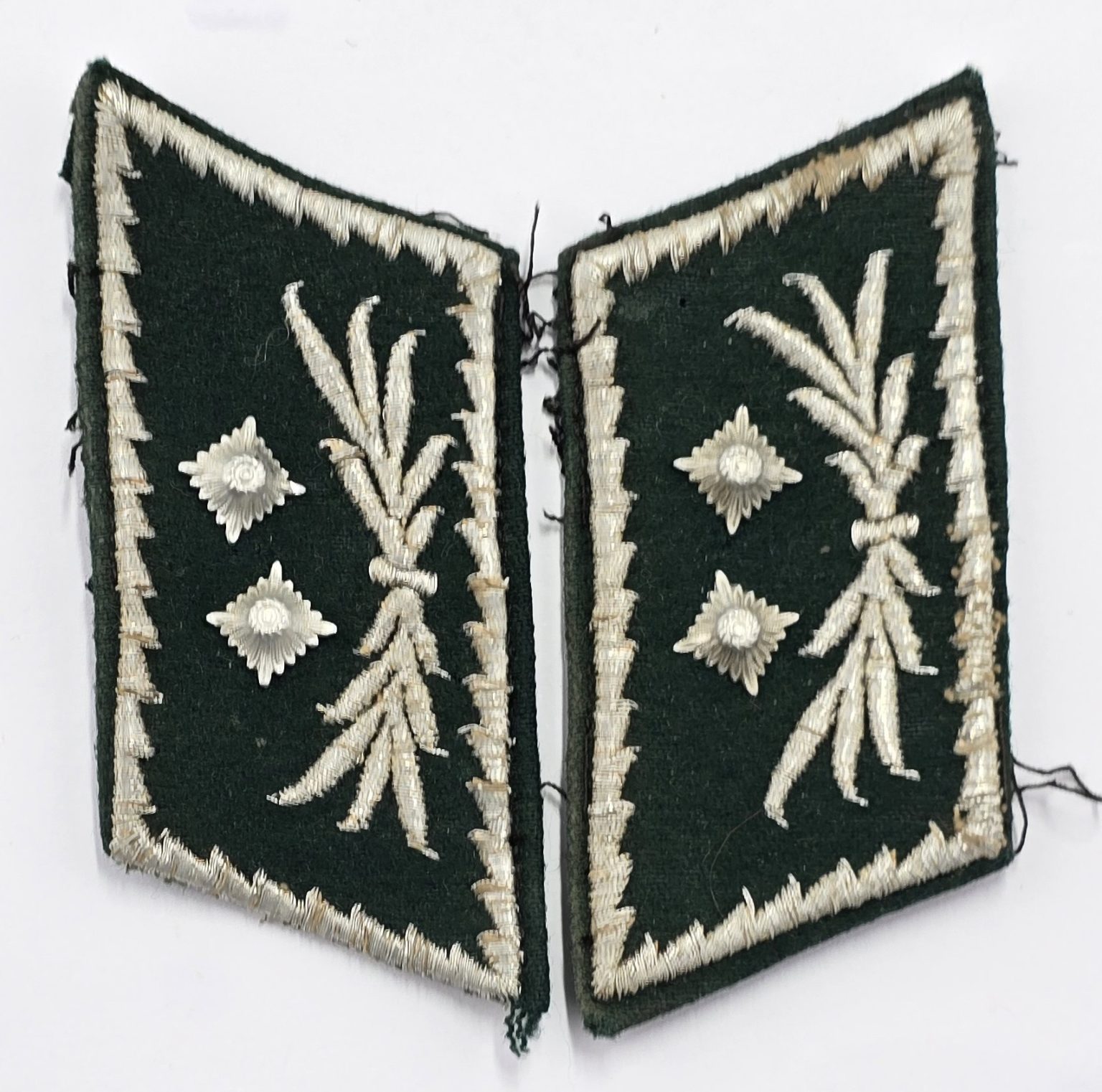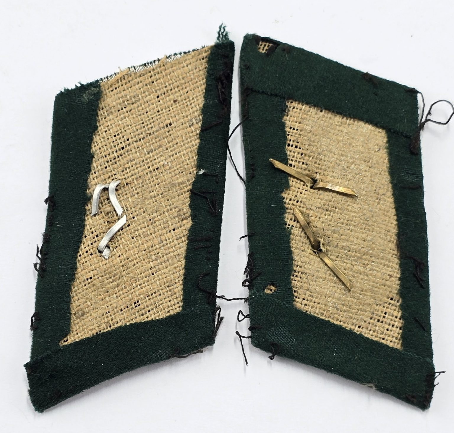 A matched pair of uniform removed silver wire with metal pip collar badges.