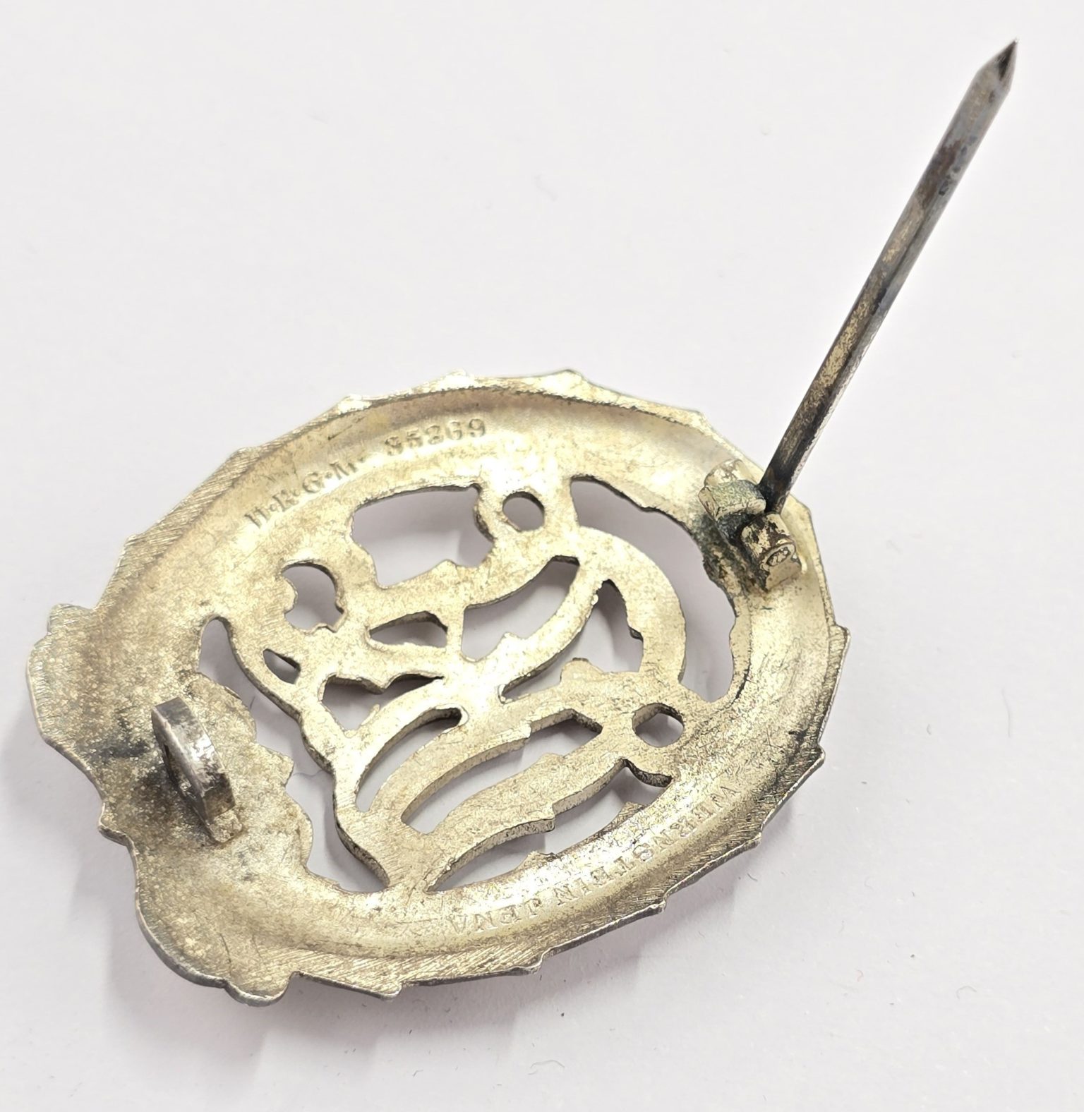 Quality made badge with most silver finish,pin and catch to back with full makers in good used condition.