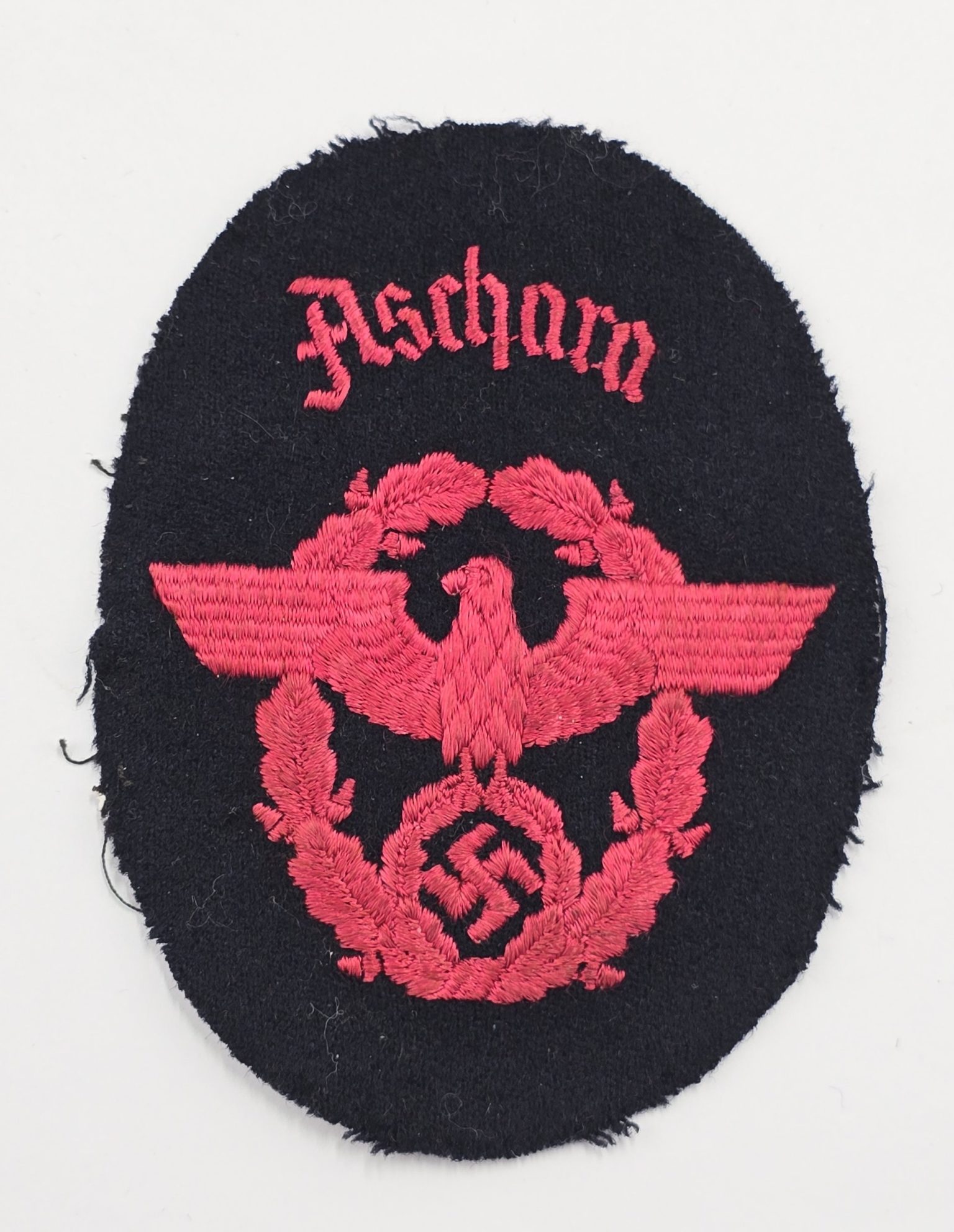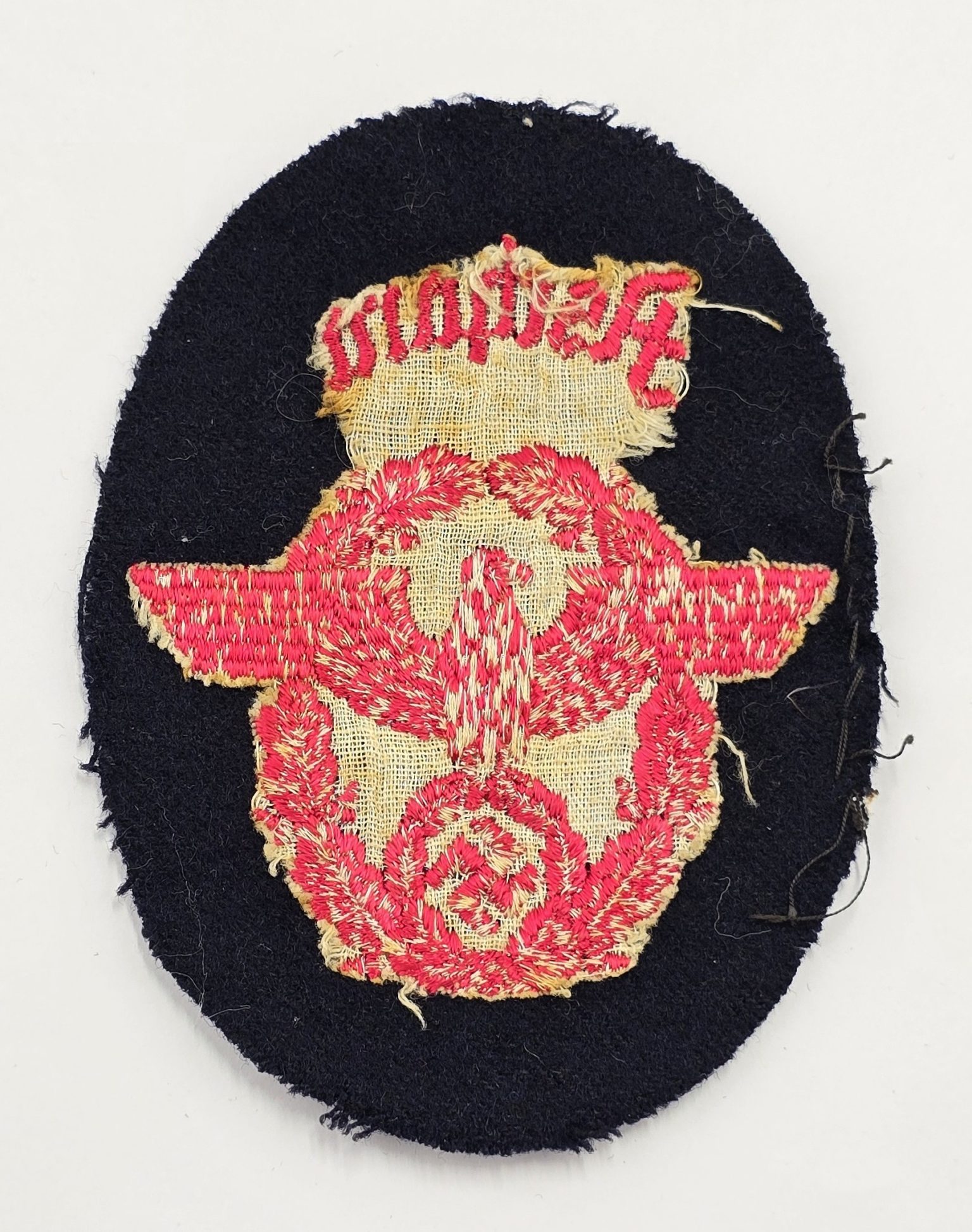 Pink stitched eagle and swastika with the town name above, removed from uniform in good condition.
