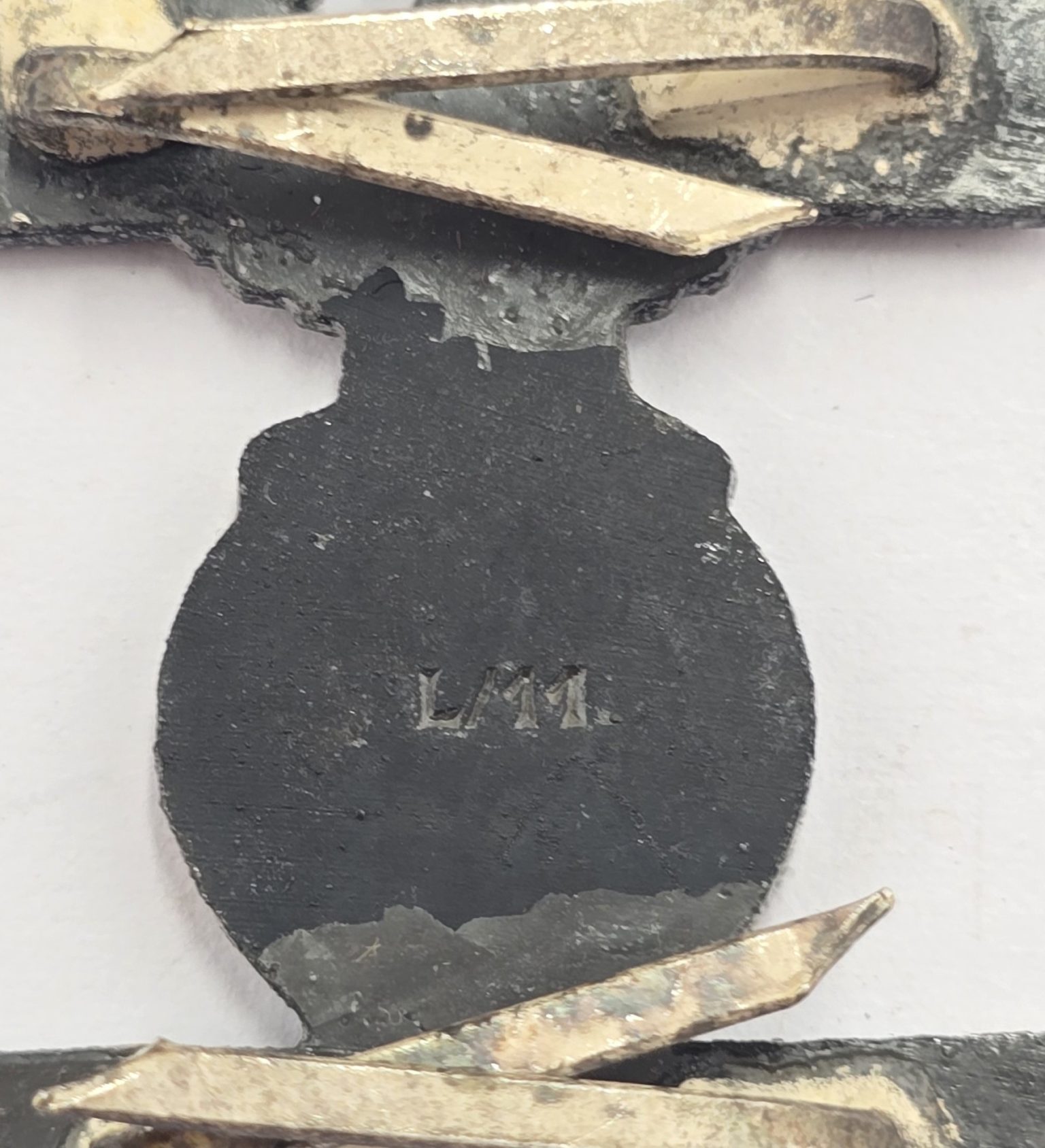 Bar to the Iron Cross complete with four blades to back stamped L/11 in used condition.