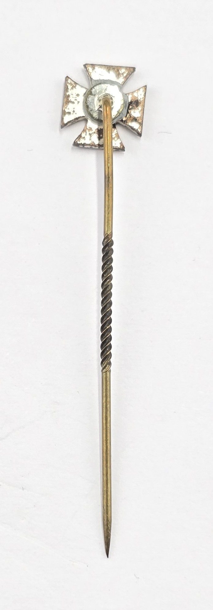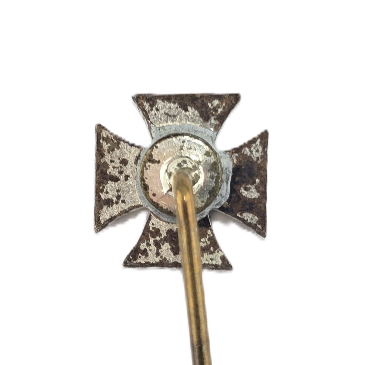 Miniature Iron Cross being 8 mm wide on twisted pin in good used condition.