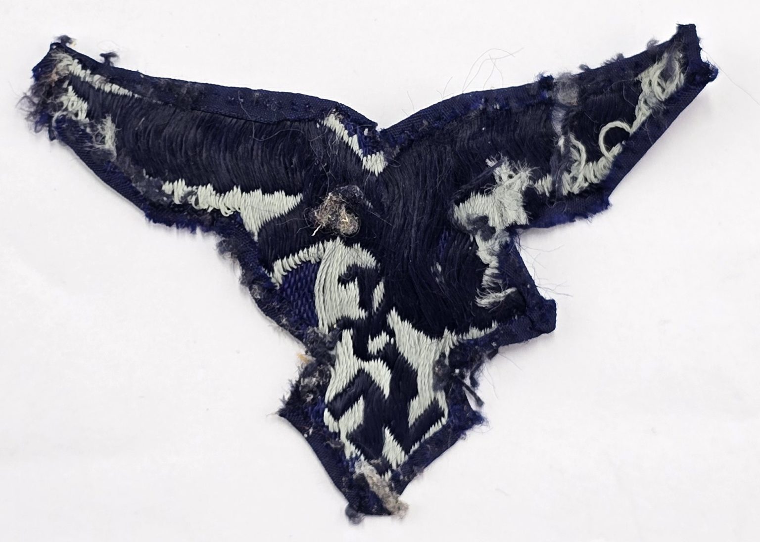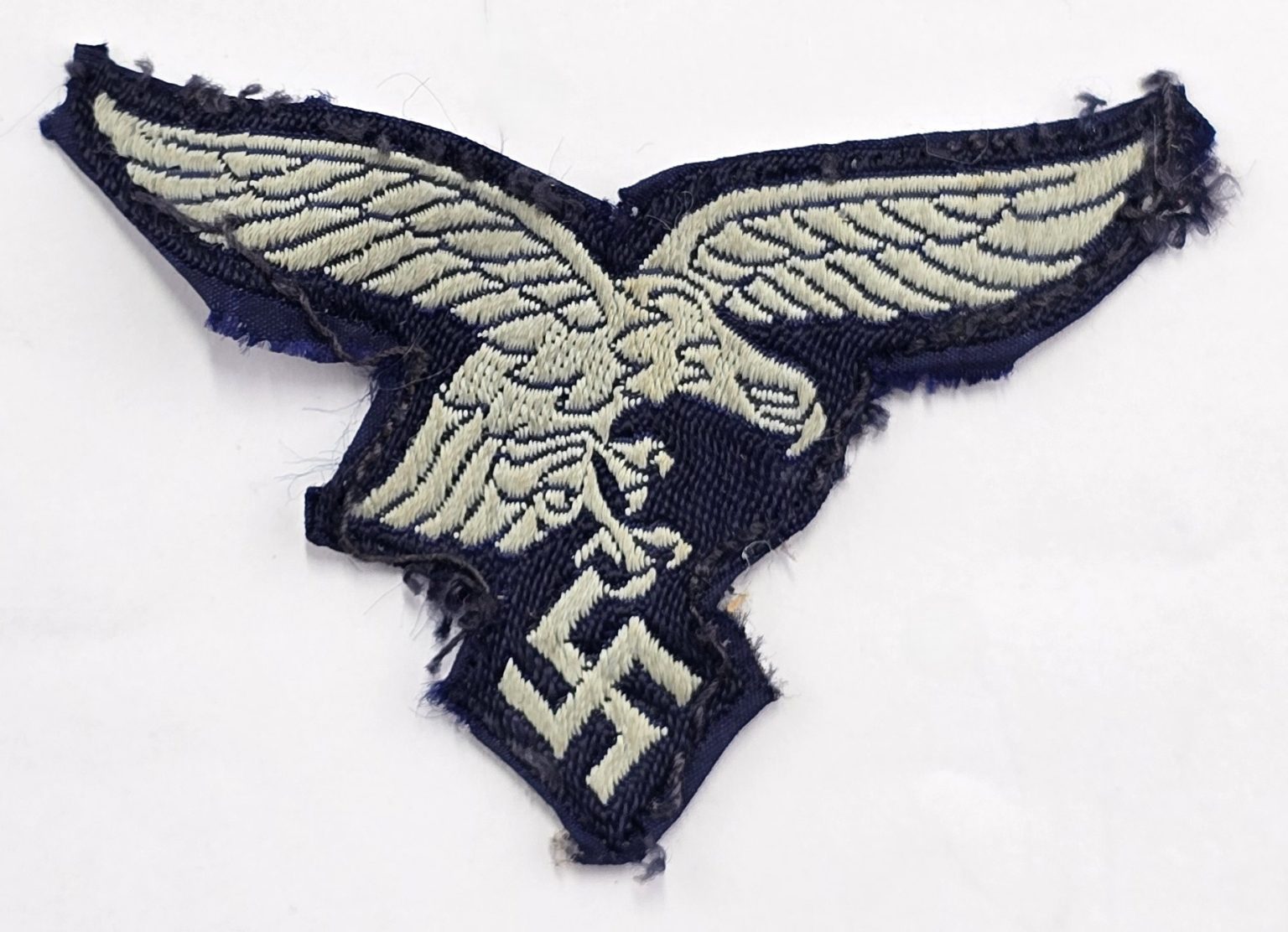 WW2 German Bevo woven Luftwaffe breast eagle and swastika removed from uniform in used condition.