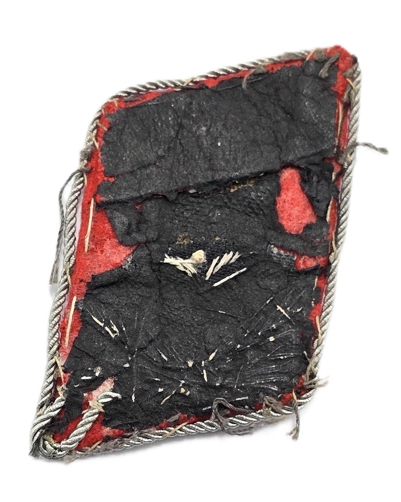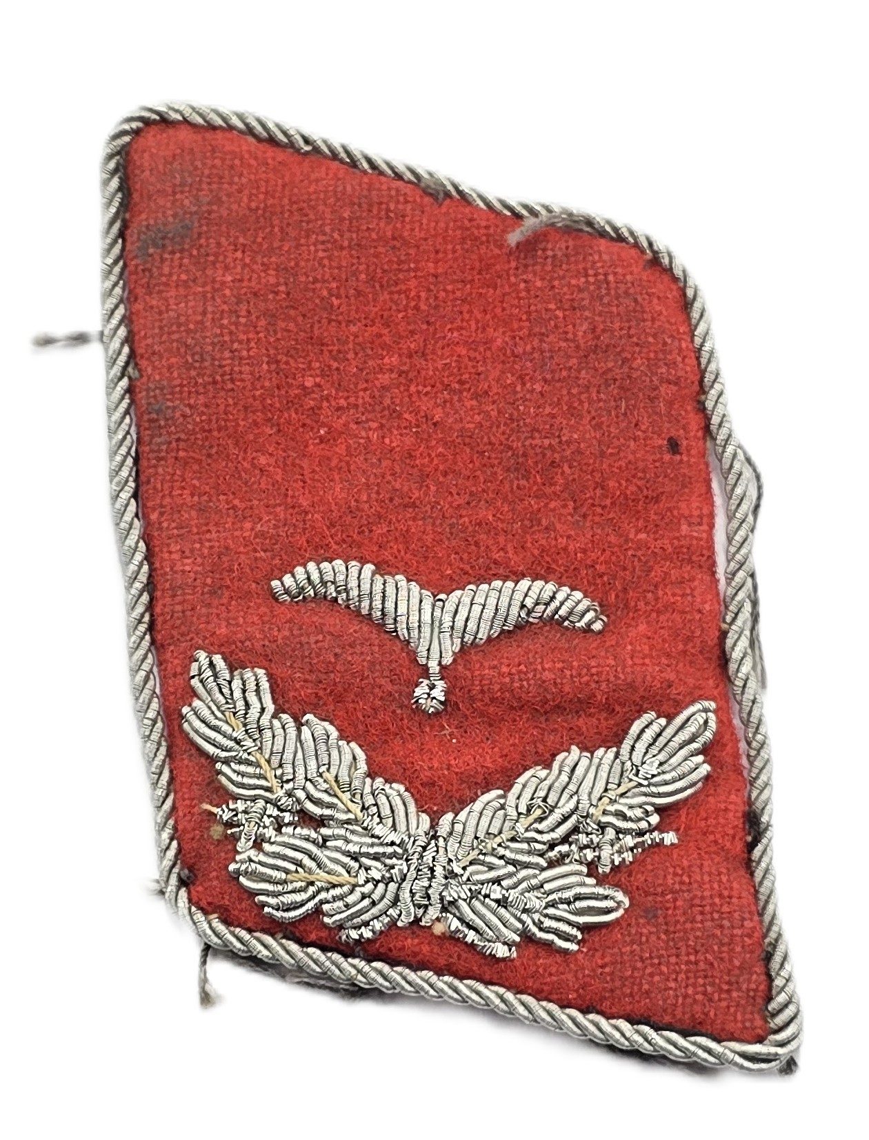 Quality made heavy silver wire on red, removed from uniform, in used condition.