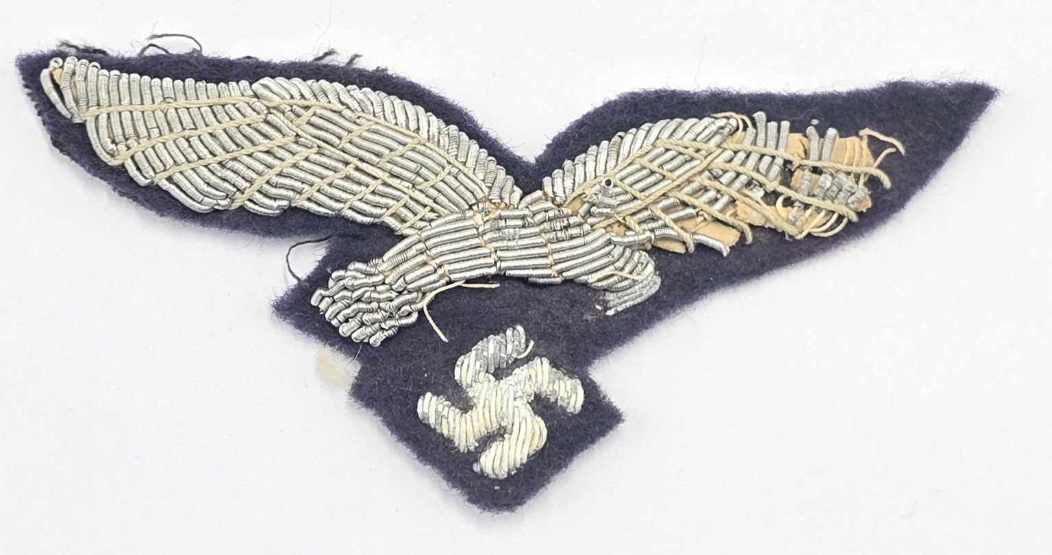 WW2 German heavy silver wire Luftwaffe officers breast eagle and swastika in well used condition.