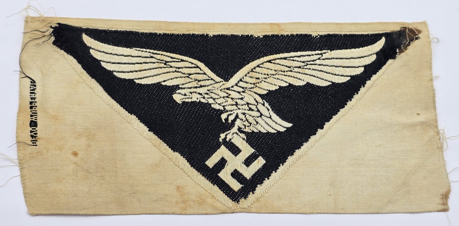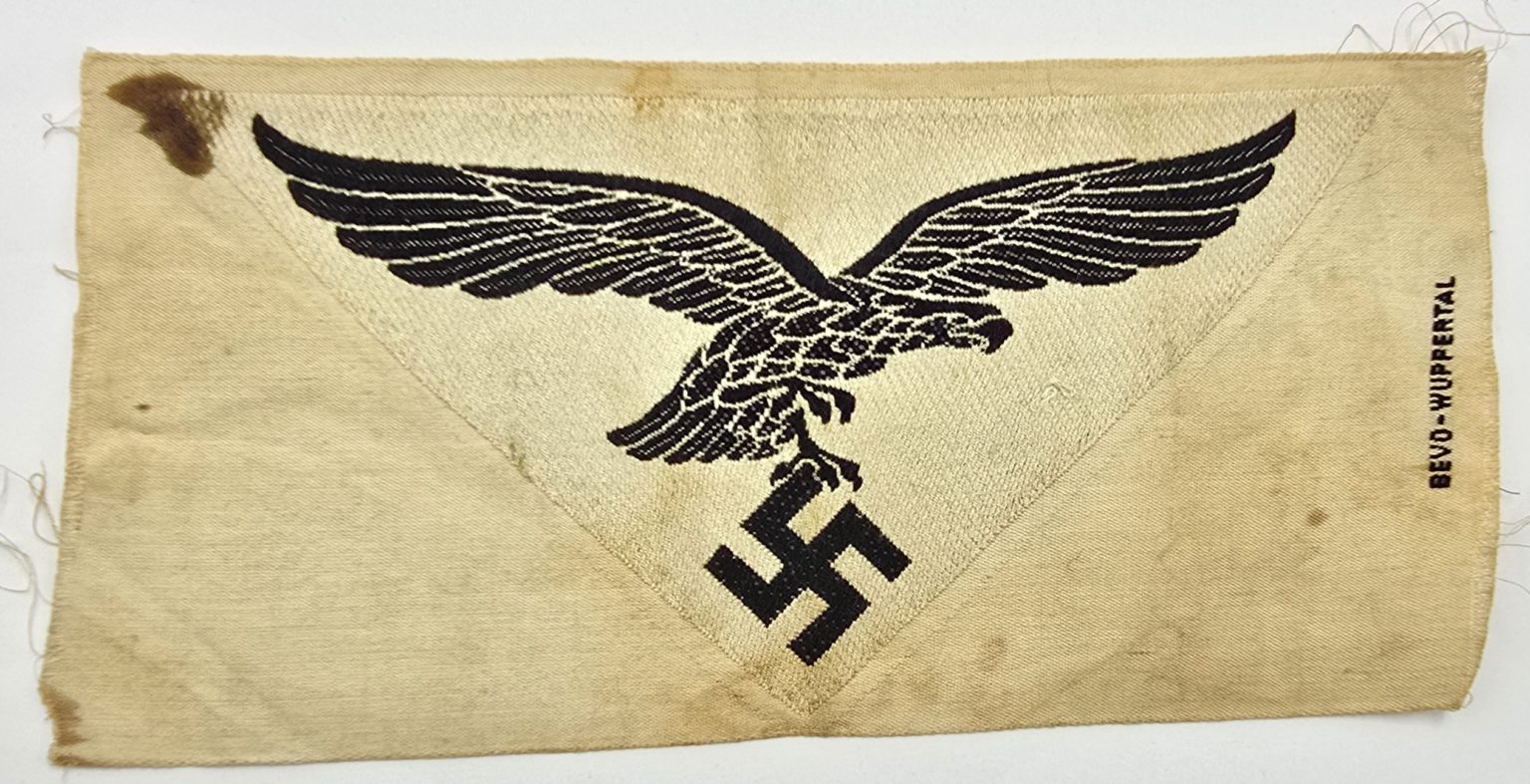 Smaller size uncut Bevo woven Luftwaffe eagle and swastika, in used condition.