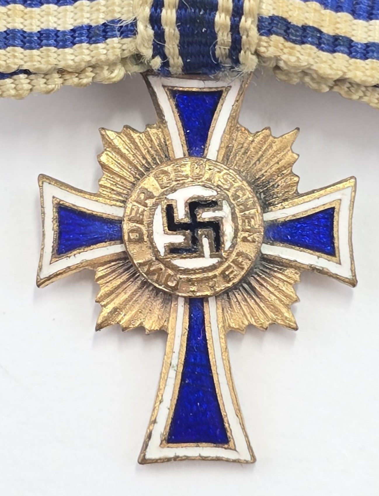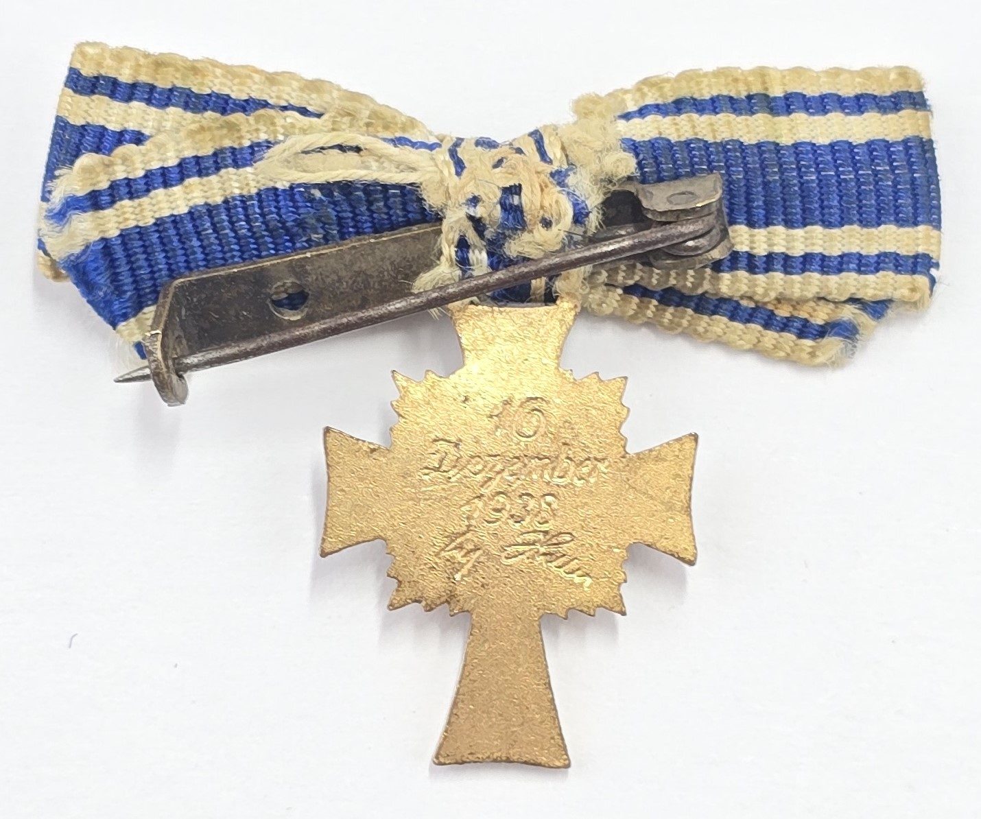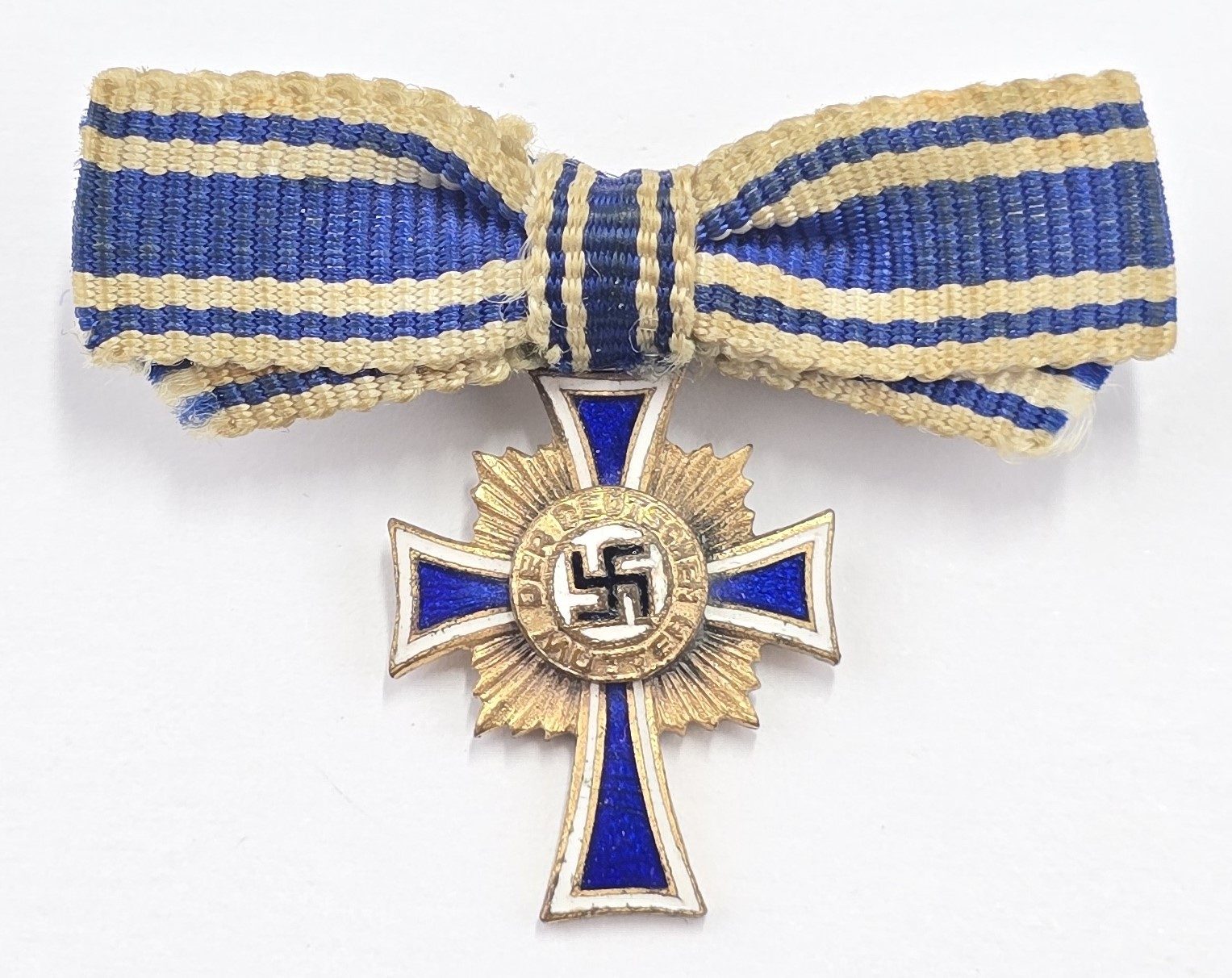 Quality made enamel miniature medal on bow ribbon with pin to back in good condition.