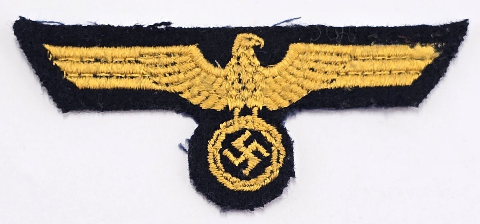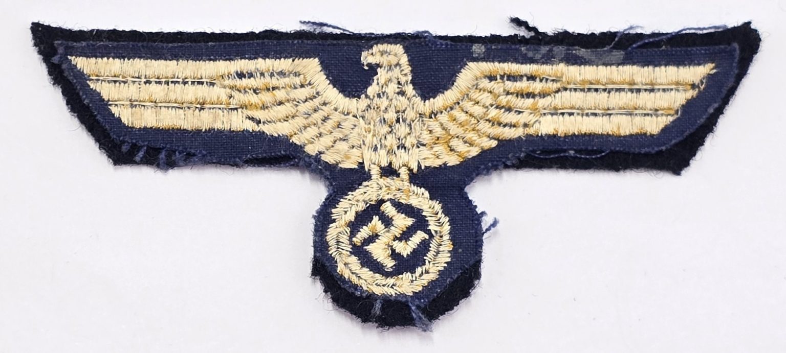 Early stitched German KM breast eagle and swastika ,removed from uniform in used condition.