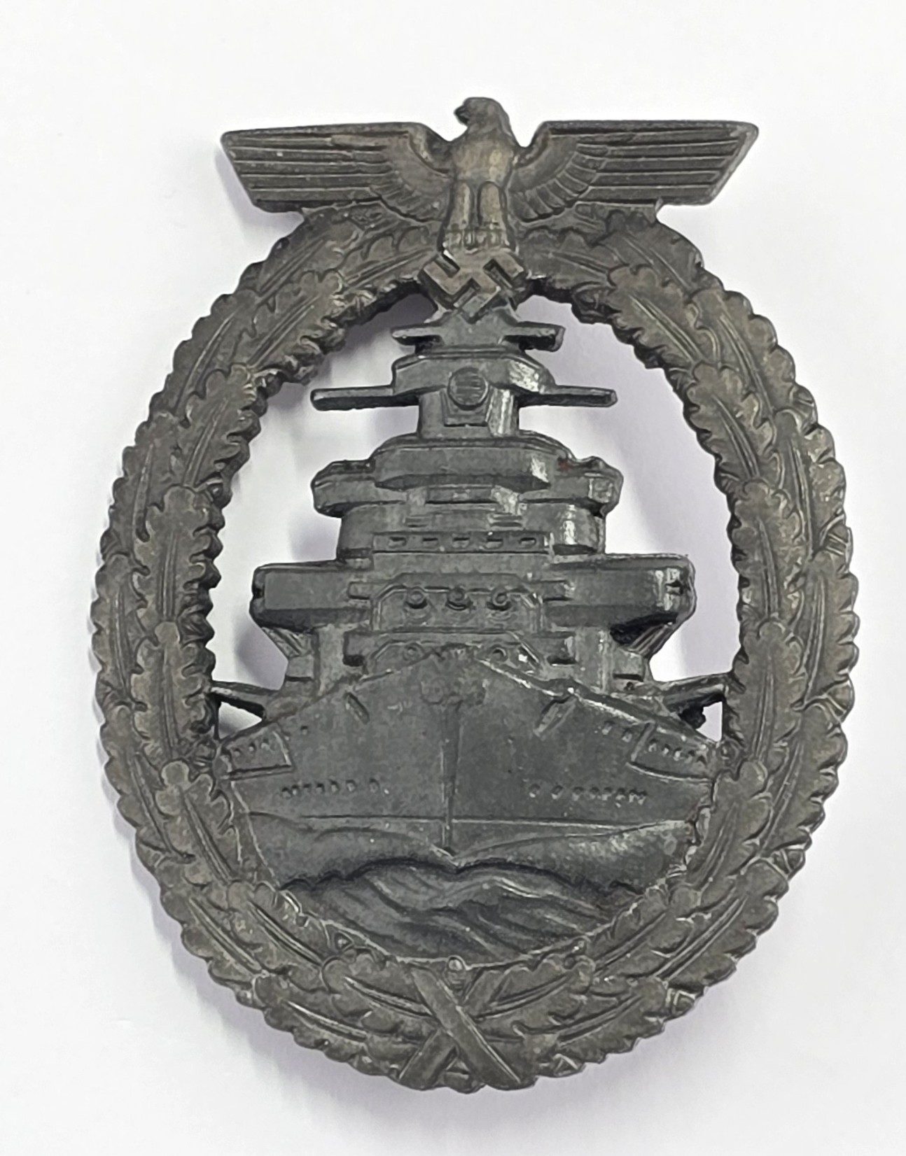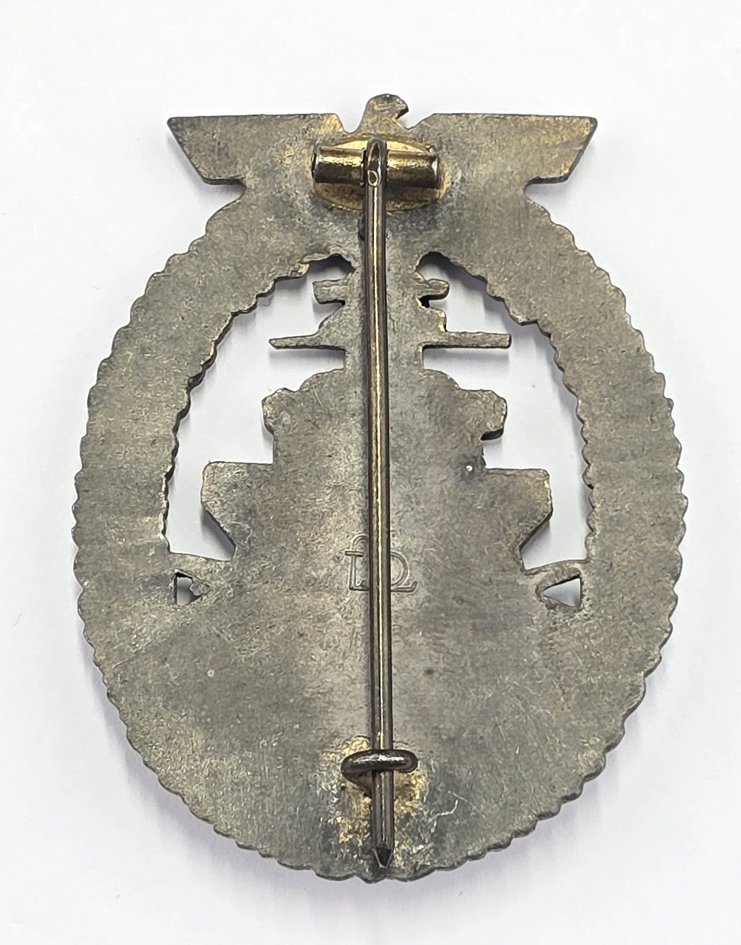 WW2 German High Seas Fleet War Badge by FO for Fredrich Orth, mid war quality with pin and catch in good used condition.