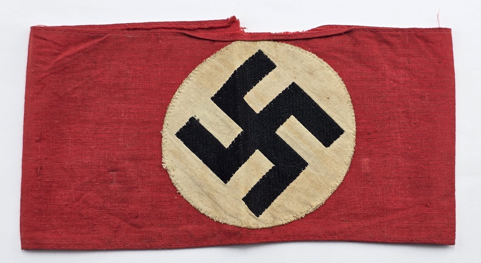 Early German cotton band with Bevo woven circle and swastika to centre in good used condition.