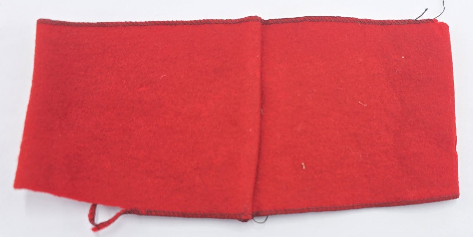 Early German red wool band with stitched swastika to centre in used condition.