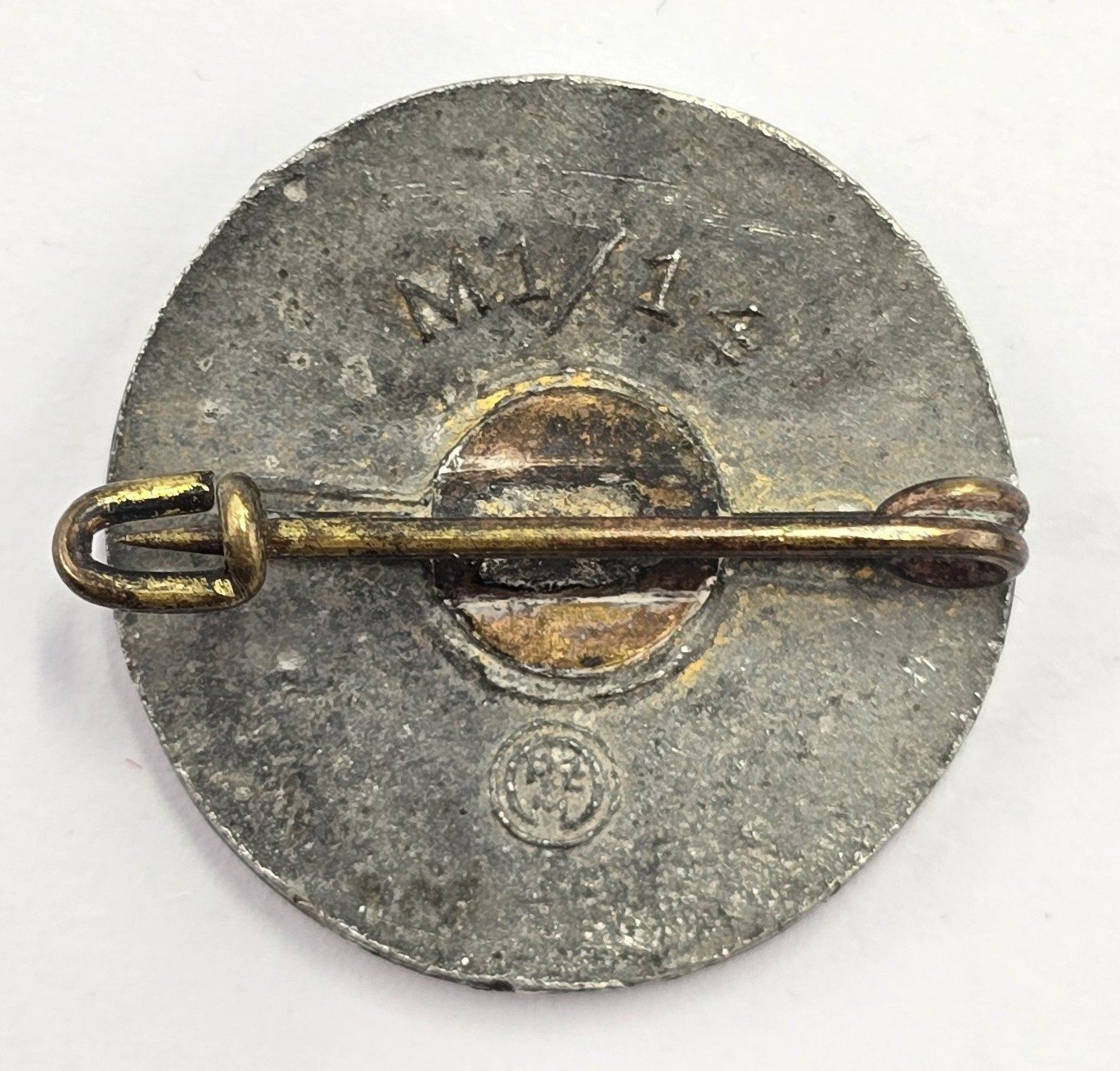 WW2 German late war painted badge with pin fixing to back marked RZM M1/14 in good condition.