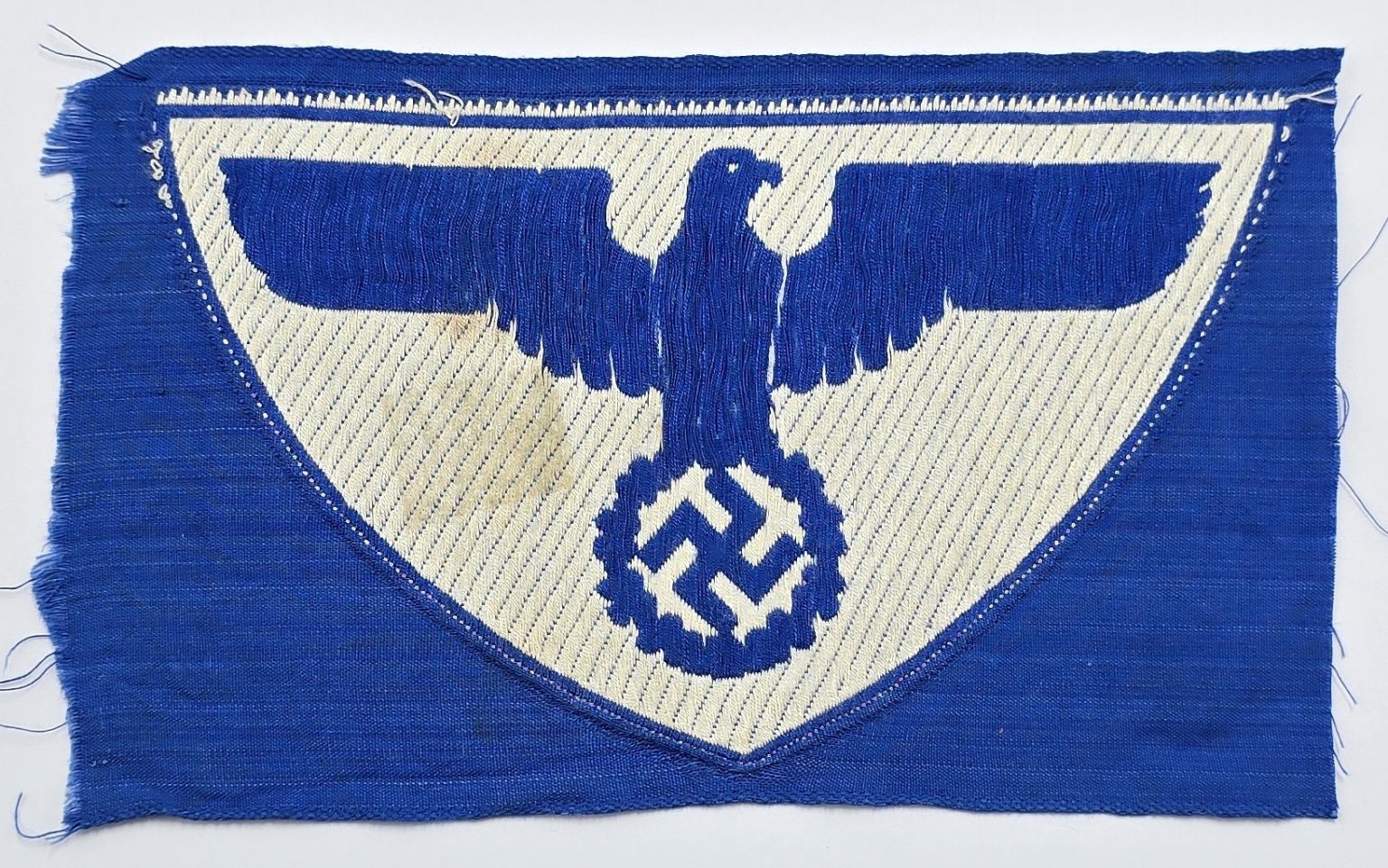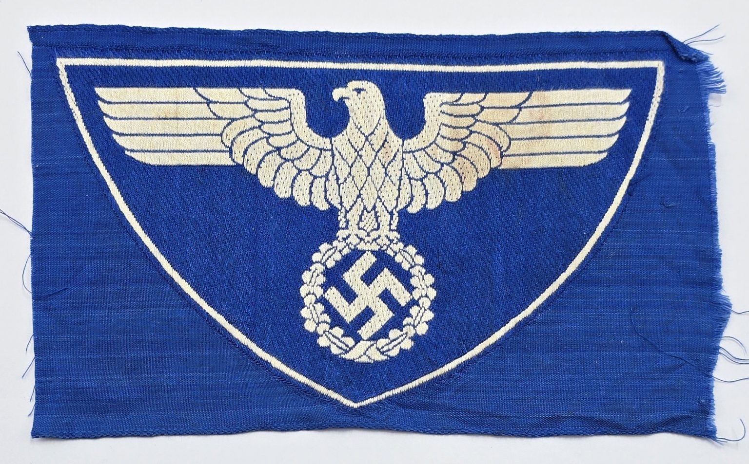 Large uncut Bevo woven NSDAP eagle and swastika in good condition,rare to find.